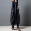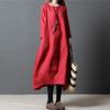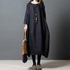 Vestido Nuevo Otoño 2025 para Mujer Estilo Coreano Suelto Talla Grande Casual Algodón y Lino Manga Larga Larga Cuello Redondo Falda Larga