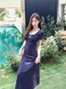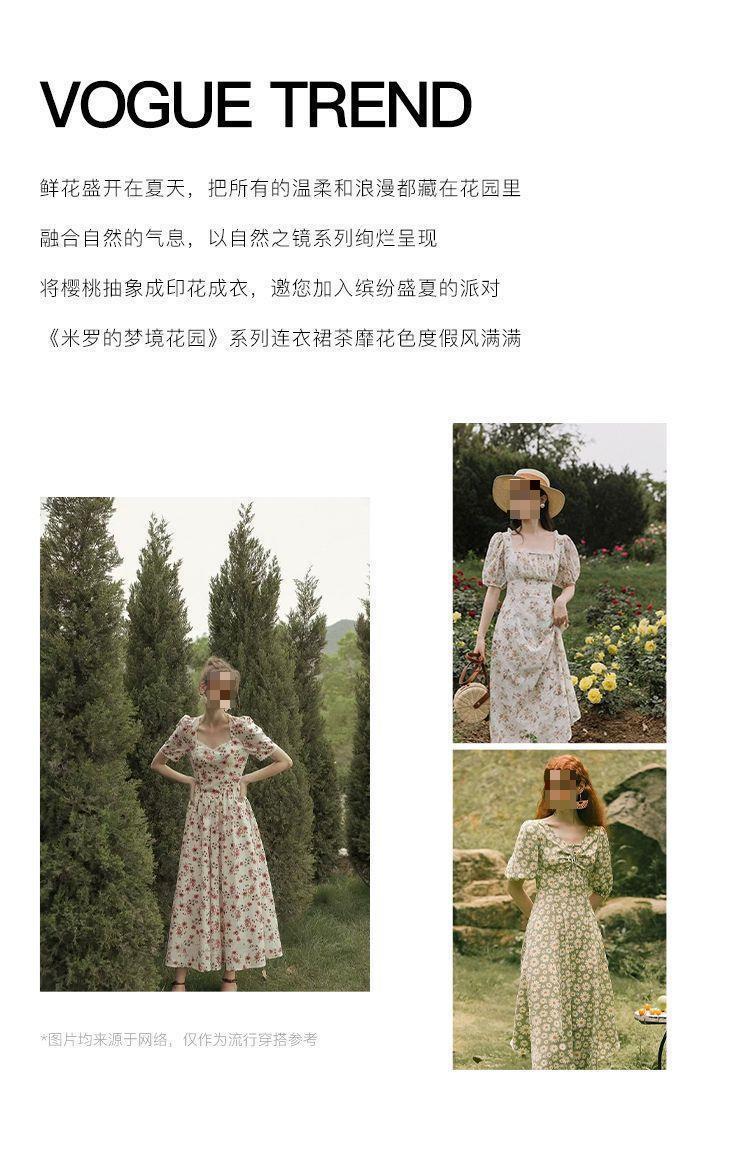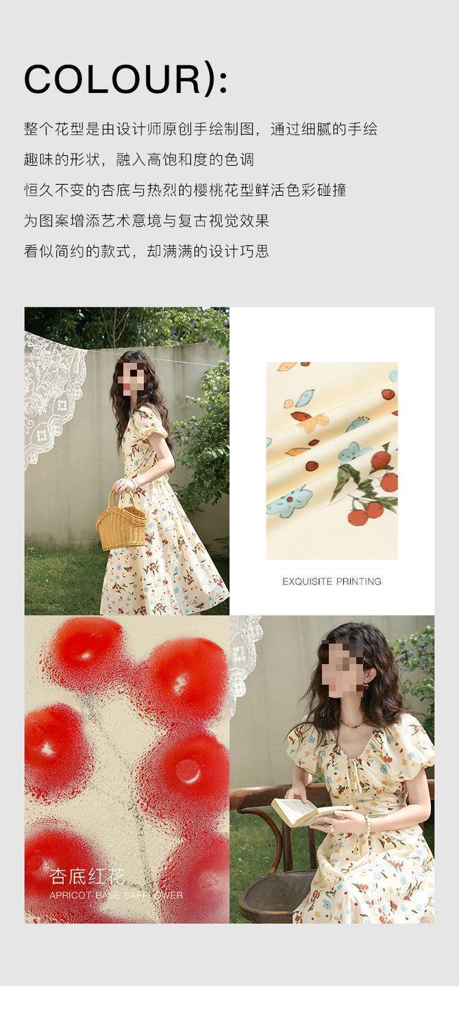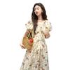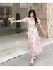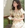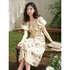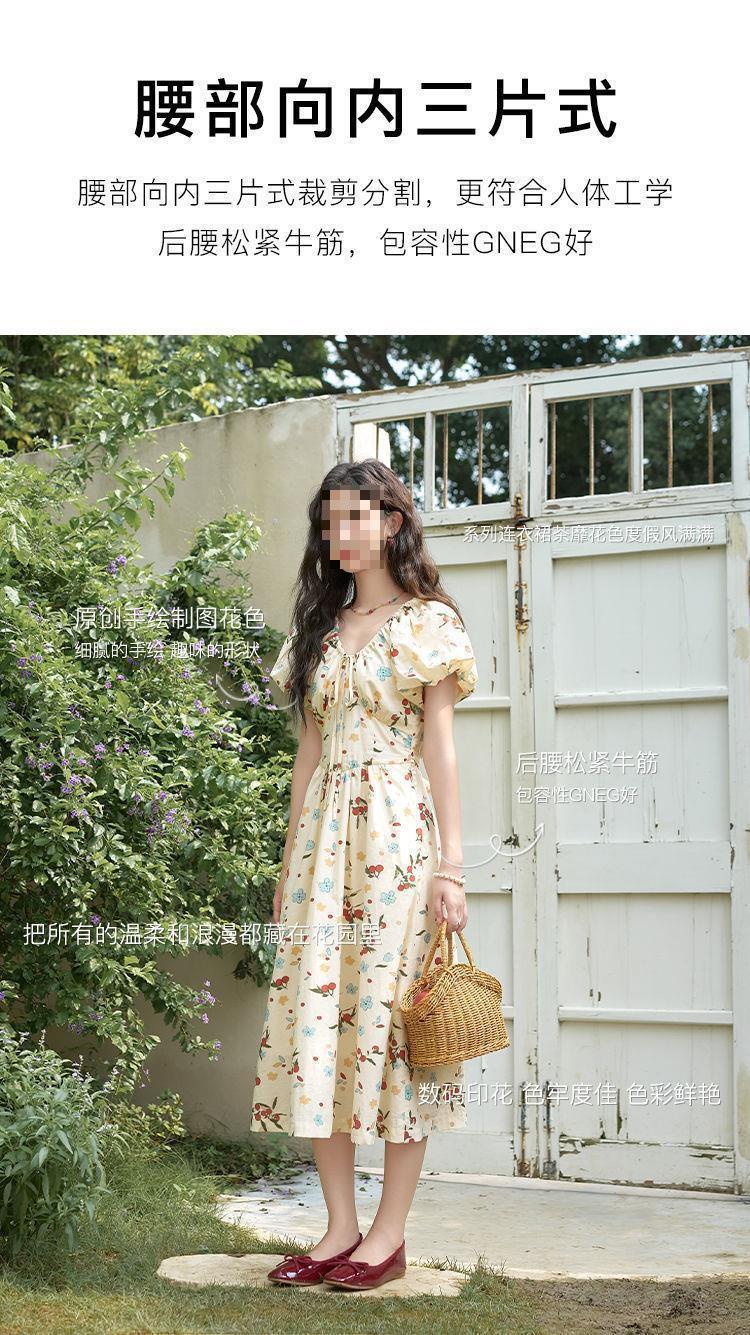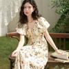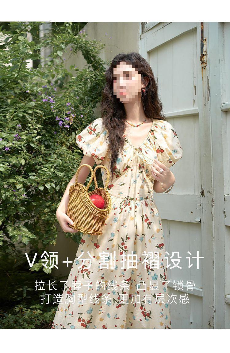 Vestido Floral Francés con Cuello en V para Mujer 2024 Nuevo Estilo de Verano con Delicadas Mangas Abullonadas y Diseño Elegante, Ajustado y a la Moda