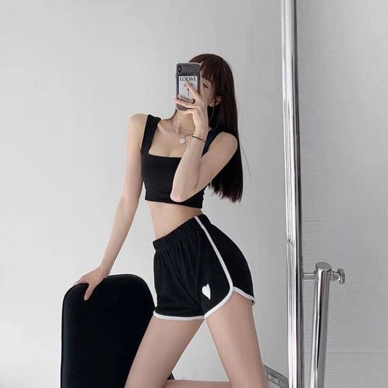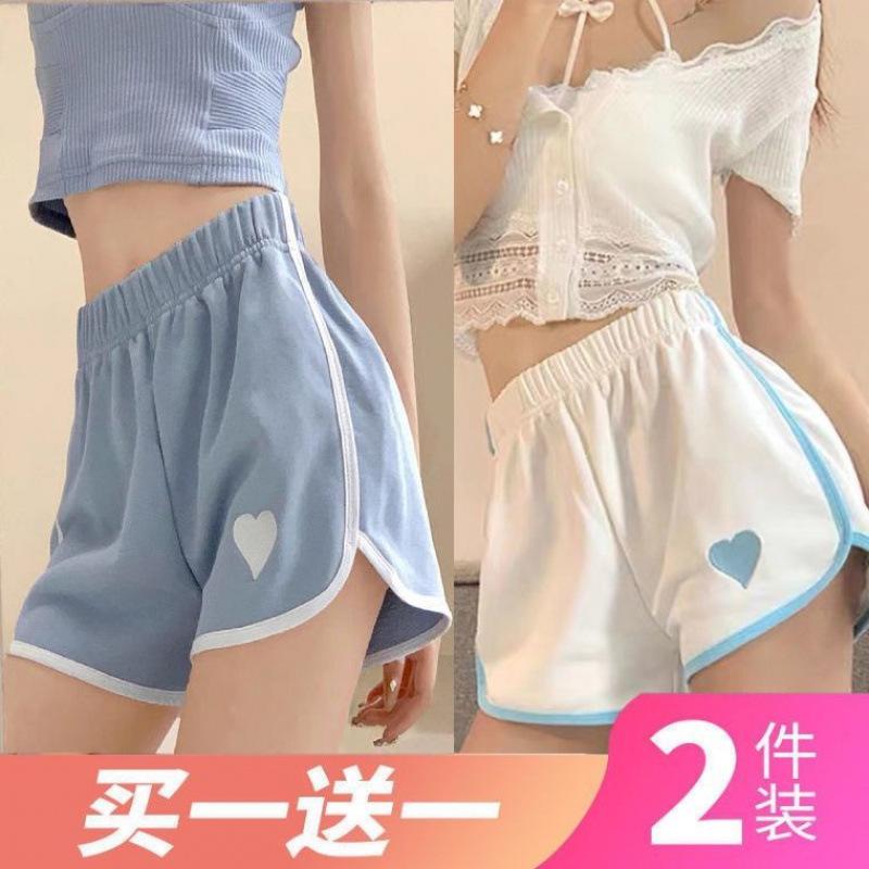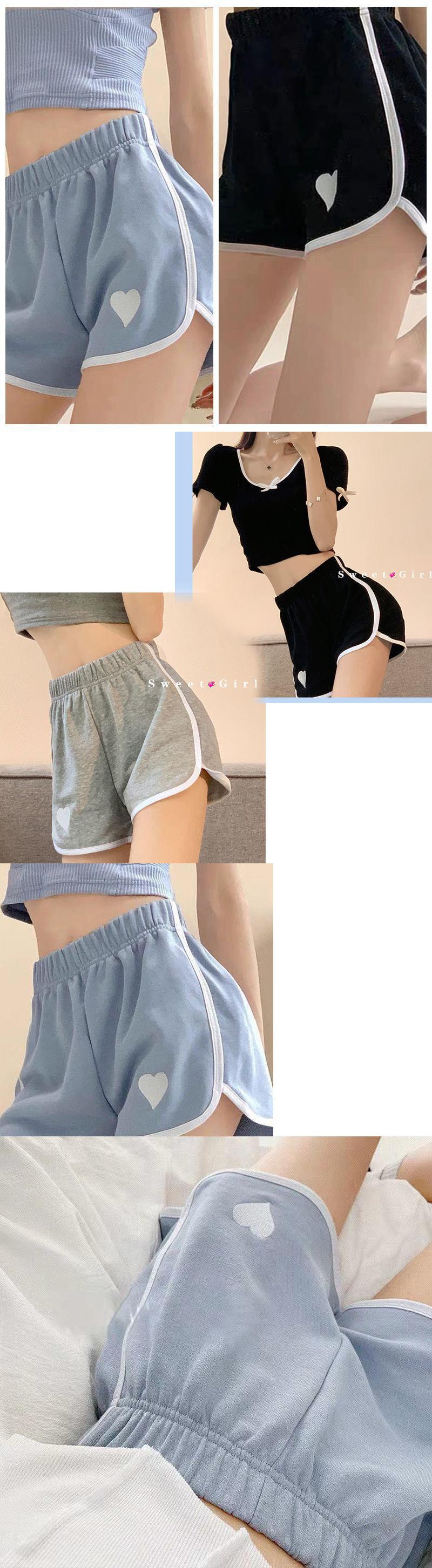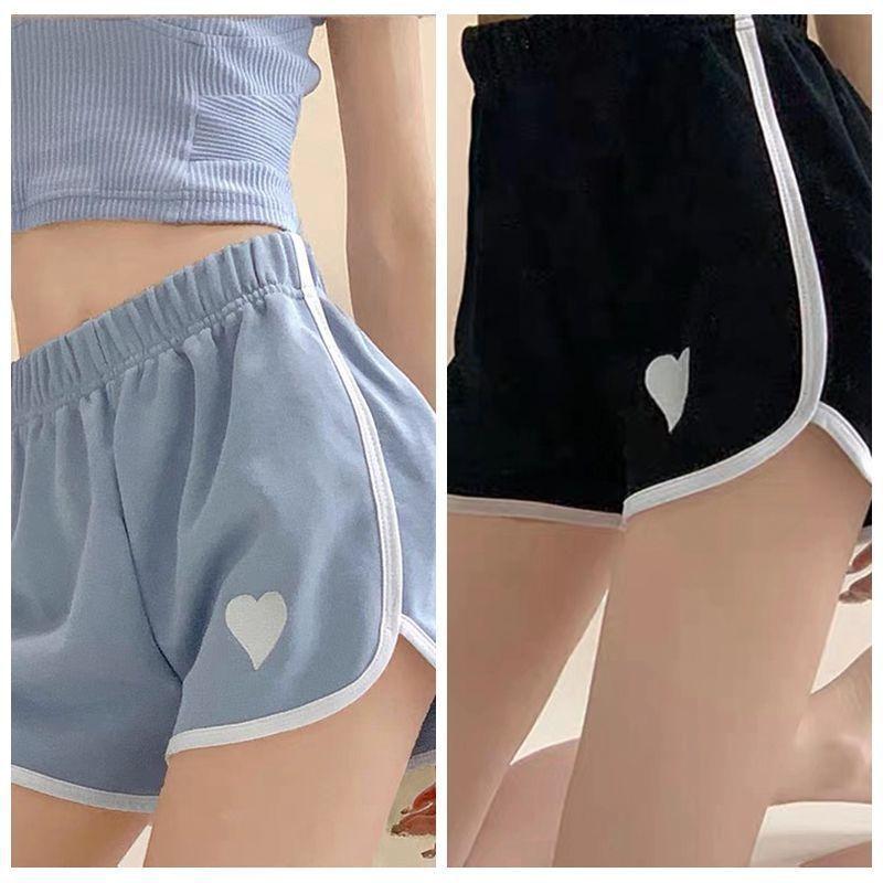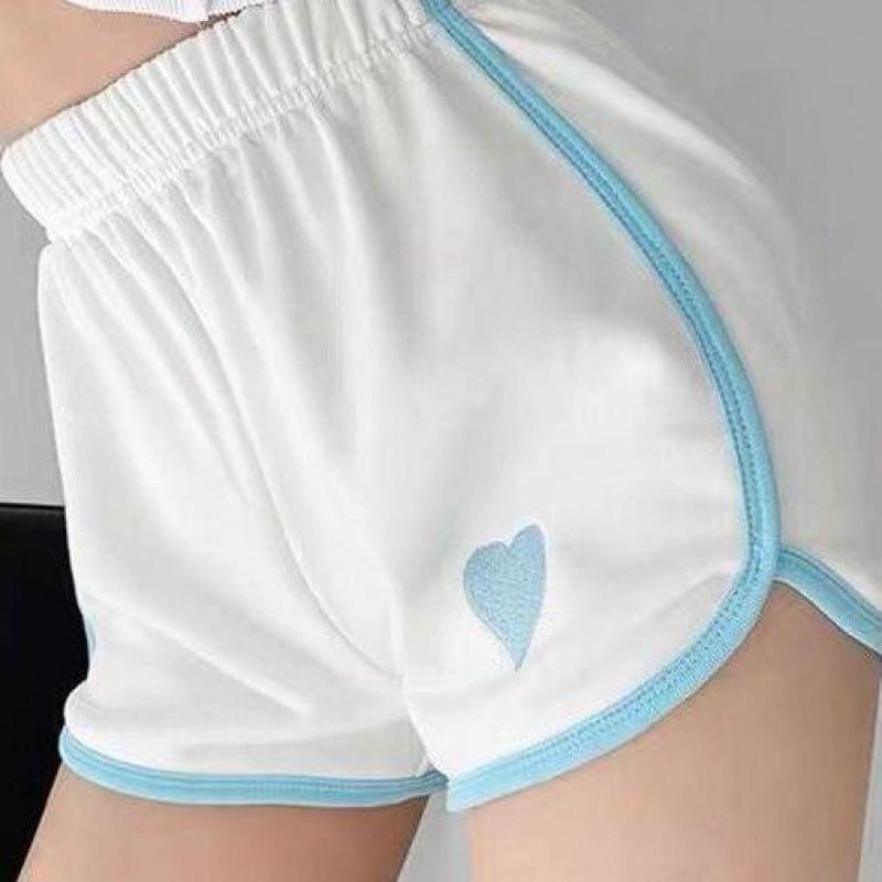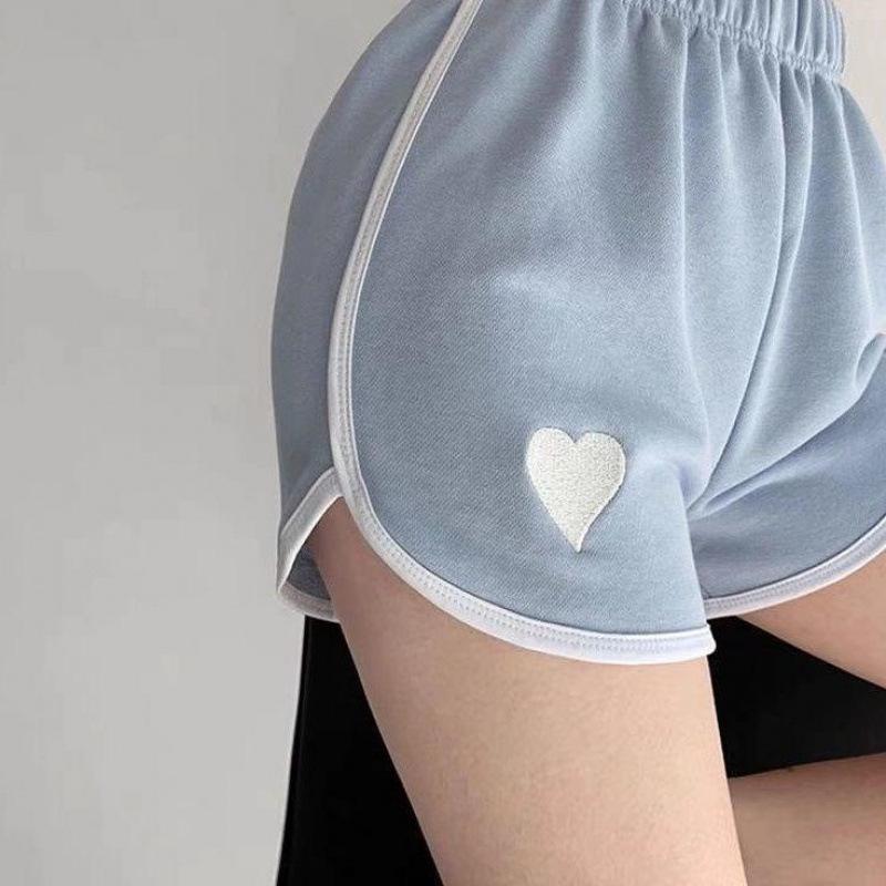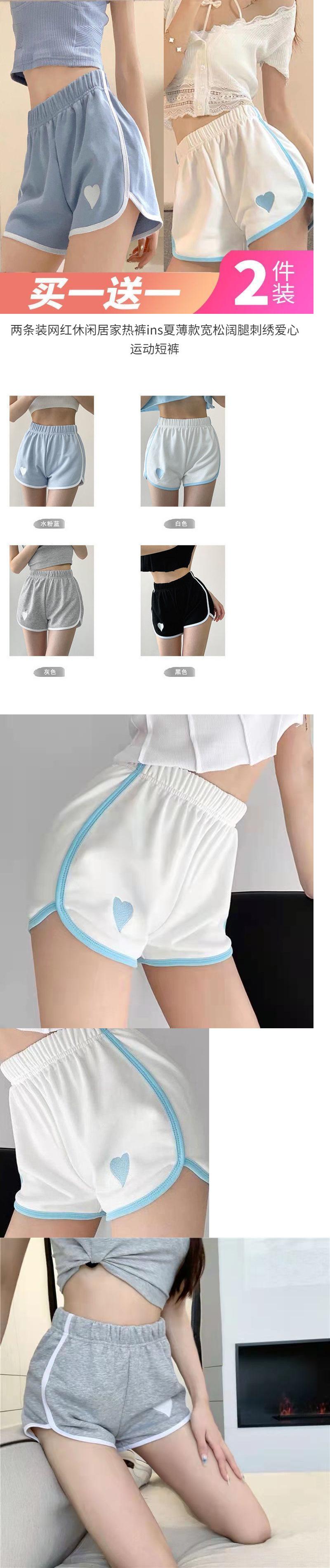 Paquete de dos Pantalones cortos casuales de moda para el hogar Ins Verano Delgados Sueltos de Pierna Ancha Corazón Bordado Shorts Deportivos