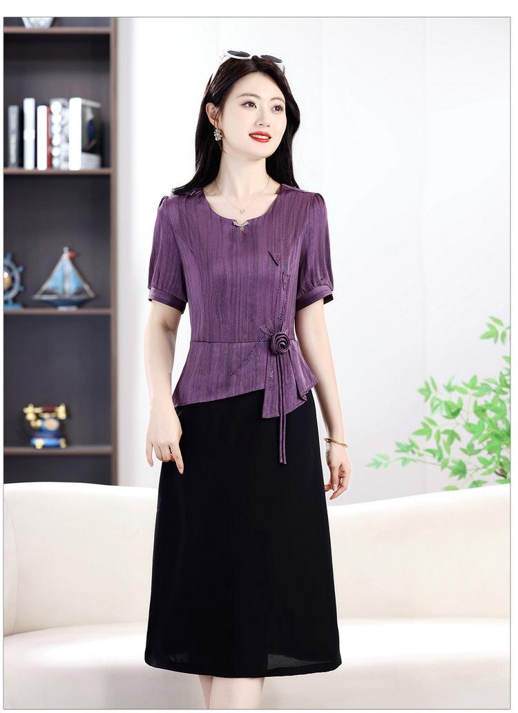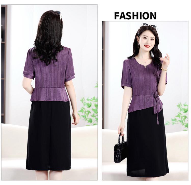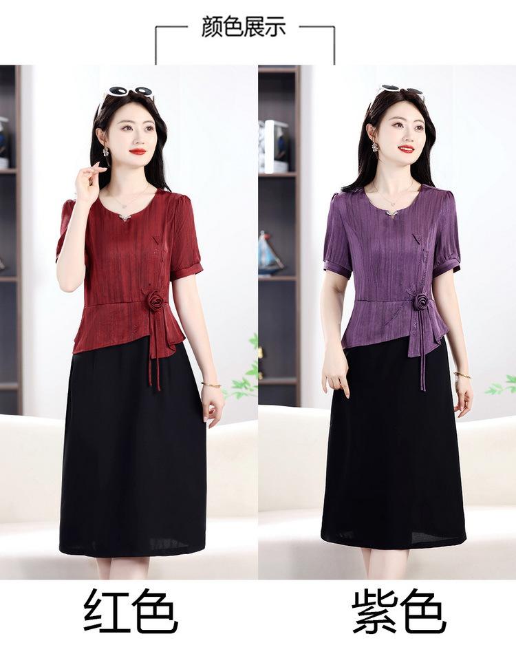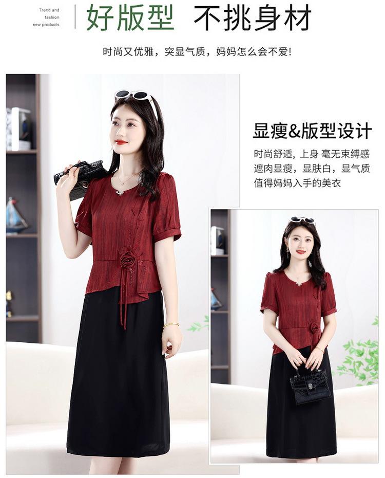 Vestido de Verano de Moda para Mamá 2025 Nuevo Look Adelgazante Falda Midi para Mujeres de Mediana Edad y Mayores