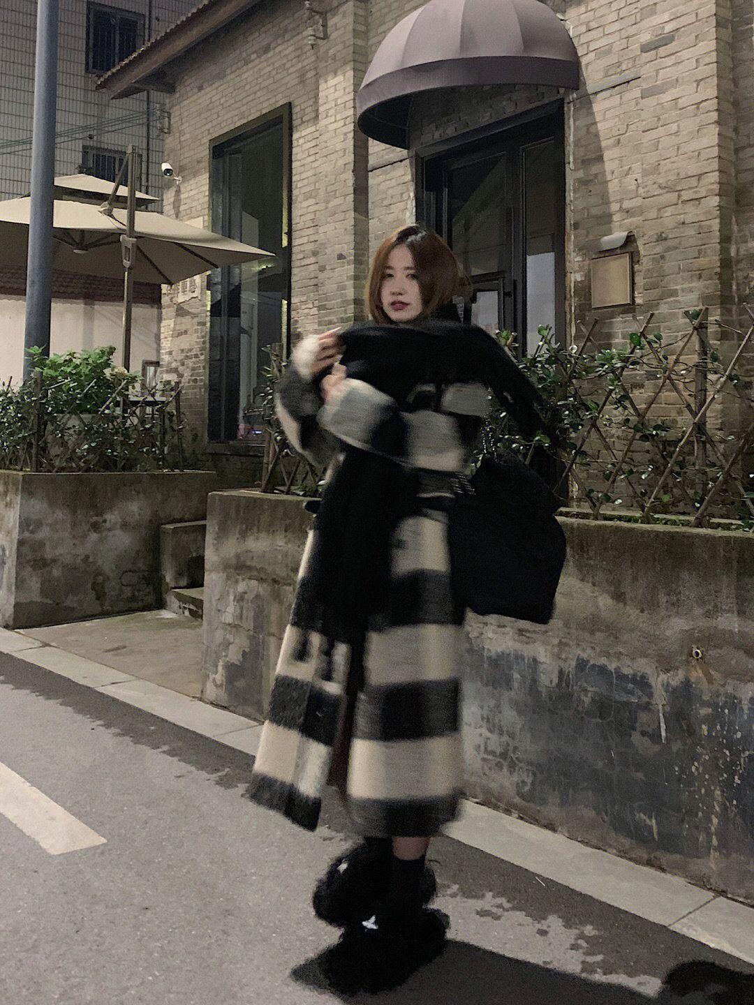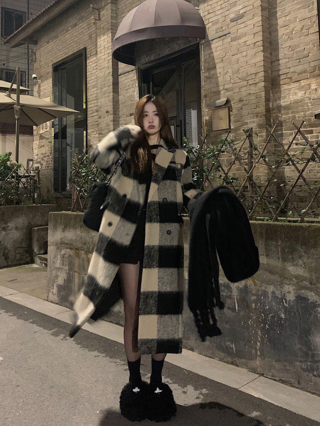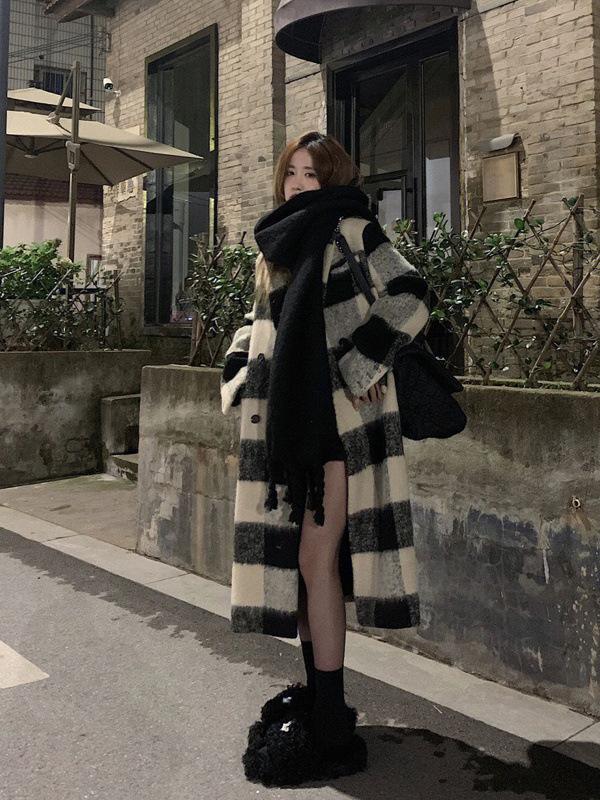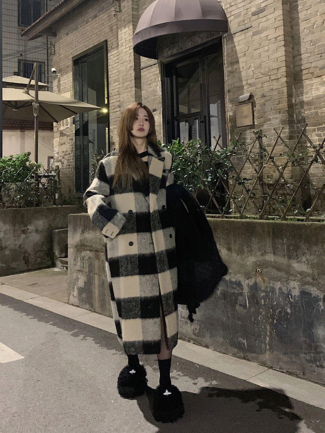 Abrigo de Lana para Mujer Otoño e Invierno Engrosado Estilo Coreano 2025 Nuevo Estilo Hepburn Sensación de Alta Gama
