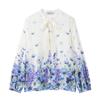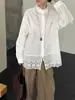2025 Top de Verano para Mujer Transfronterizo Moda Casual Manga Linterna Cuello en V Botones Calado Encaje Bordado Camisa