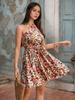 Estilo Europeo y Americano Moda Femenina Trendy Versátil Cuello V Halter Lazo Lunares Vestido Vacacional