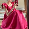 Nuevo Verano Transfronterizo Falda Slip Vintage de Cuadros con Borde de Encaje para Mujeres Pequeñas Adelgazante Cuello Cuadrado Vestido Francés para Verano
