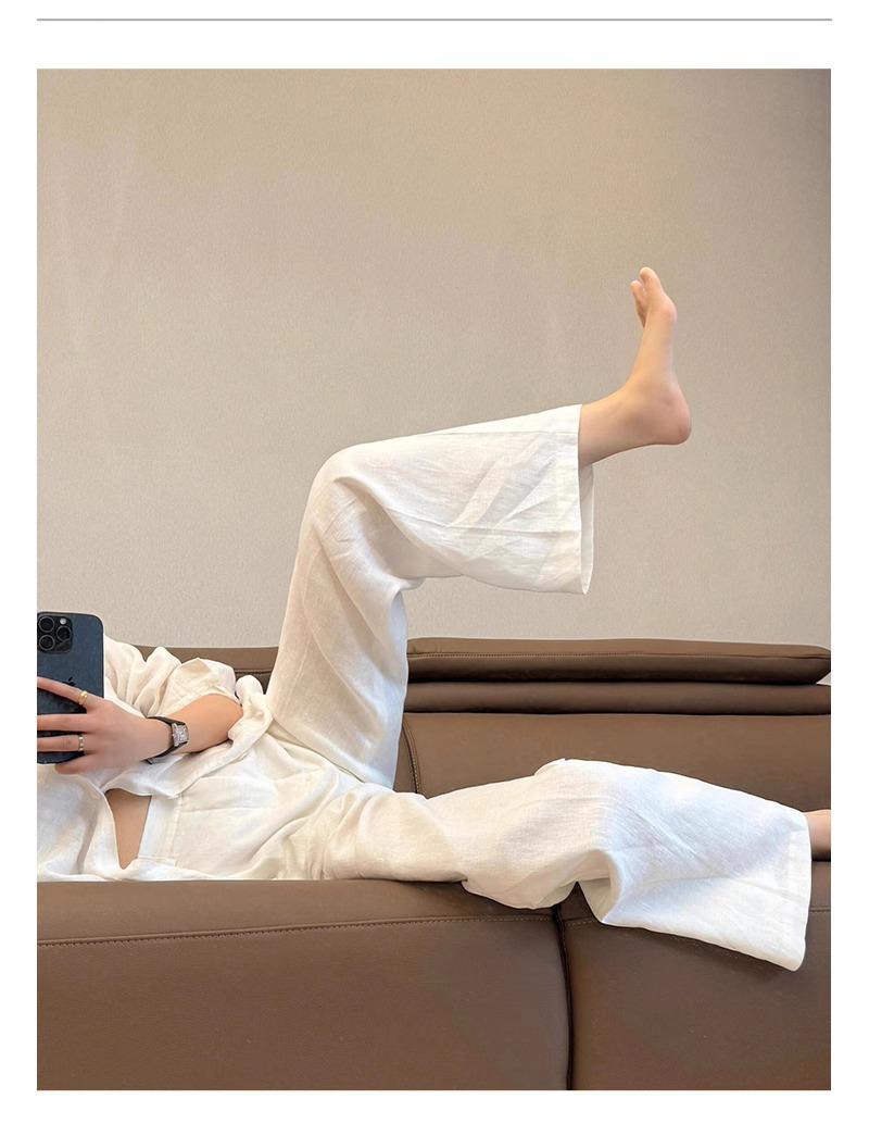 Pantalones Rectos Delgados de Lino de Algodón Blanco para Mujer Verano 2025 Nuevo Casual Simple Colgante Adelgazantes Pequeños Pantalones de Pierna Ancha