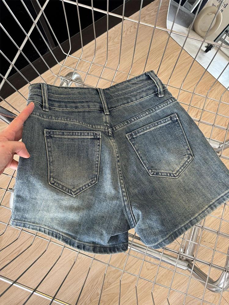 Shorts de mezclilla acampanados sexy retro americanos para mujer verano talla grande gordita mm cintura alta elásticos adelgazantes look pierna ancha pantalones cortos hot