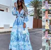 Vestido de Primavera 2024 Transfronterizo Amazon Europeo y Americano Ropa Nueva a Rayas Moda Estampado Cuello en V Manga Larga para Mujer