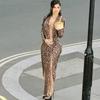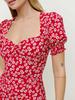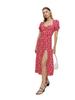 Vestido largo con abertura en el bajo estampado de manga corta abullonada con cuello cuadrado nuevo para mujer europeo y americano transfronterizo 2023