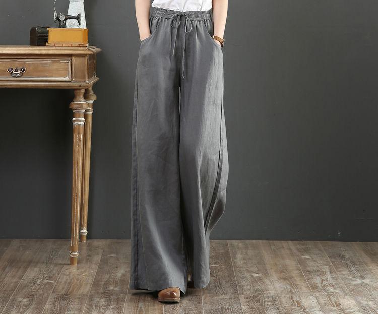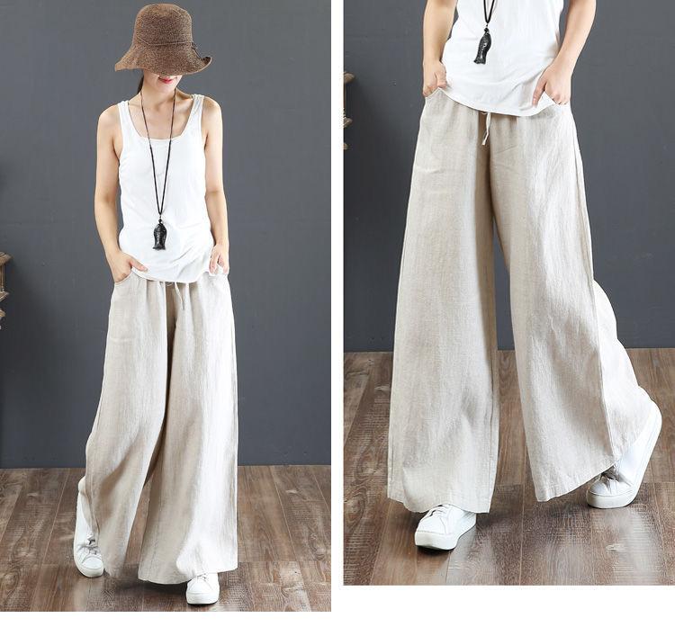 2025 Verano Nuevo Algodón y Lino Moda Pantalones de Pierna Ancha para Mujer Cintura Alta Pantalones Rectos Pantalones Largos Talla Grande Sueltos Pantalones Largos Pantalones de Lino