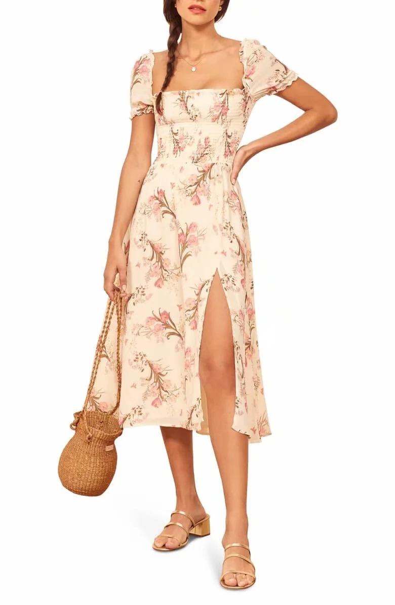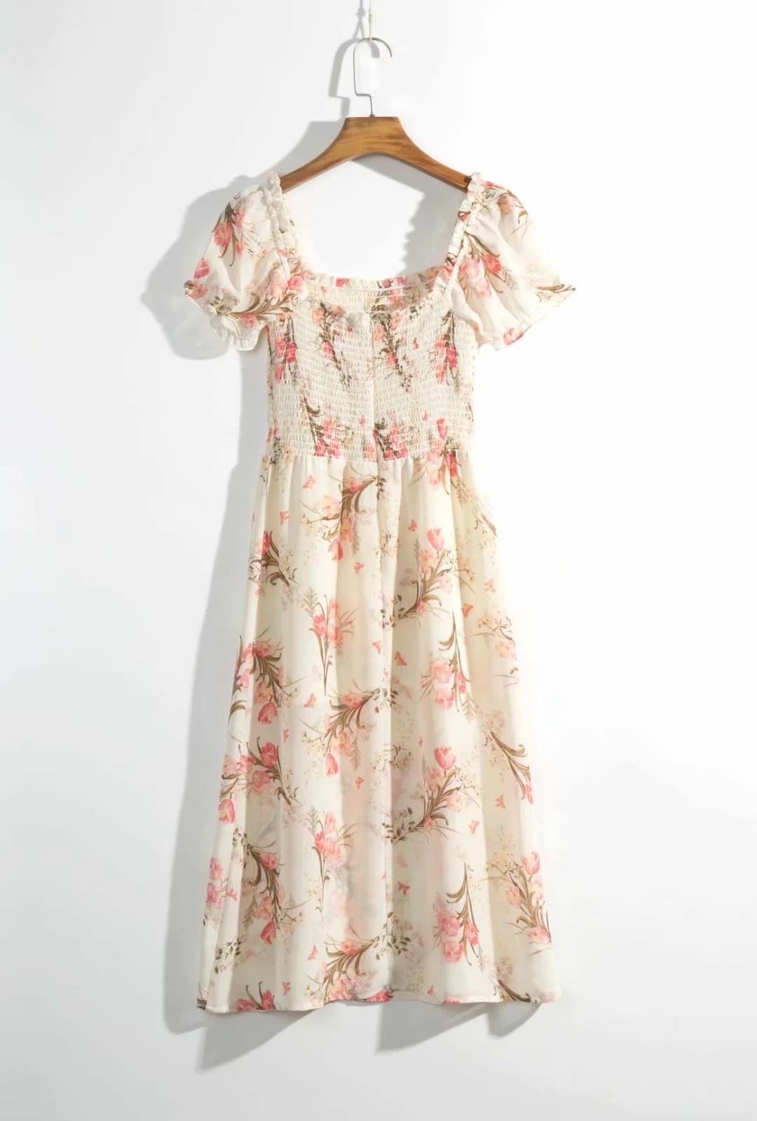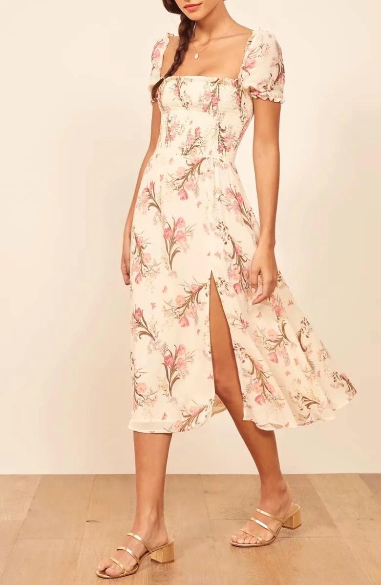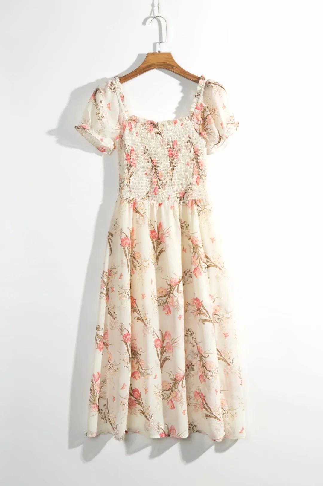 Verano 2020 Estilo Europeo y Americano Estilo Francés Nicho Moda Versátil Cintura Alta Ajustado Adelgazante Estampado Commuter Vestido Elegante