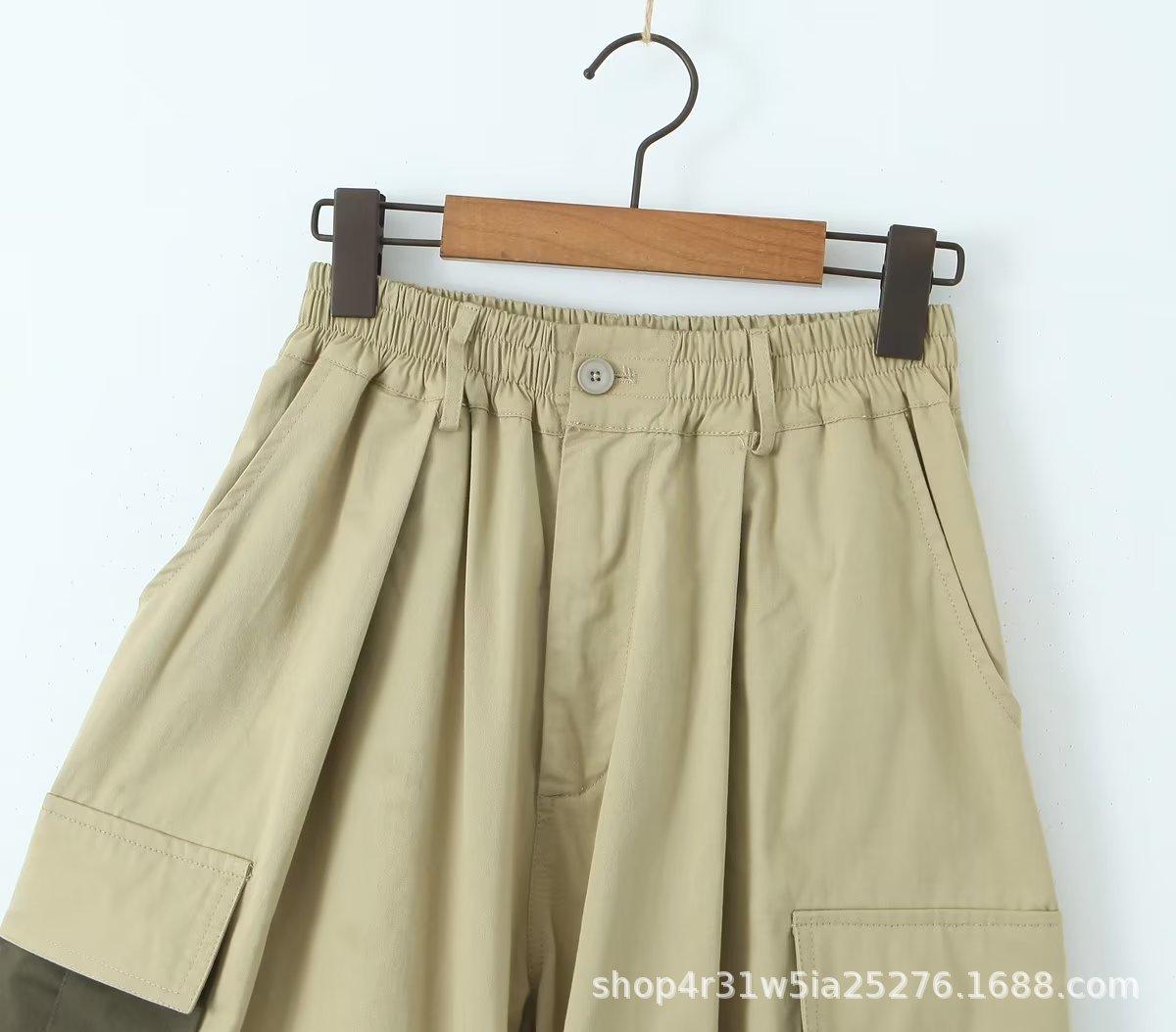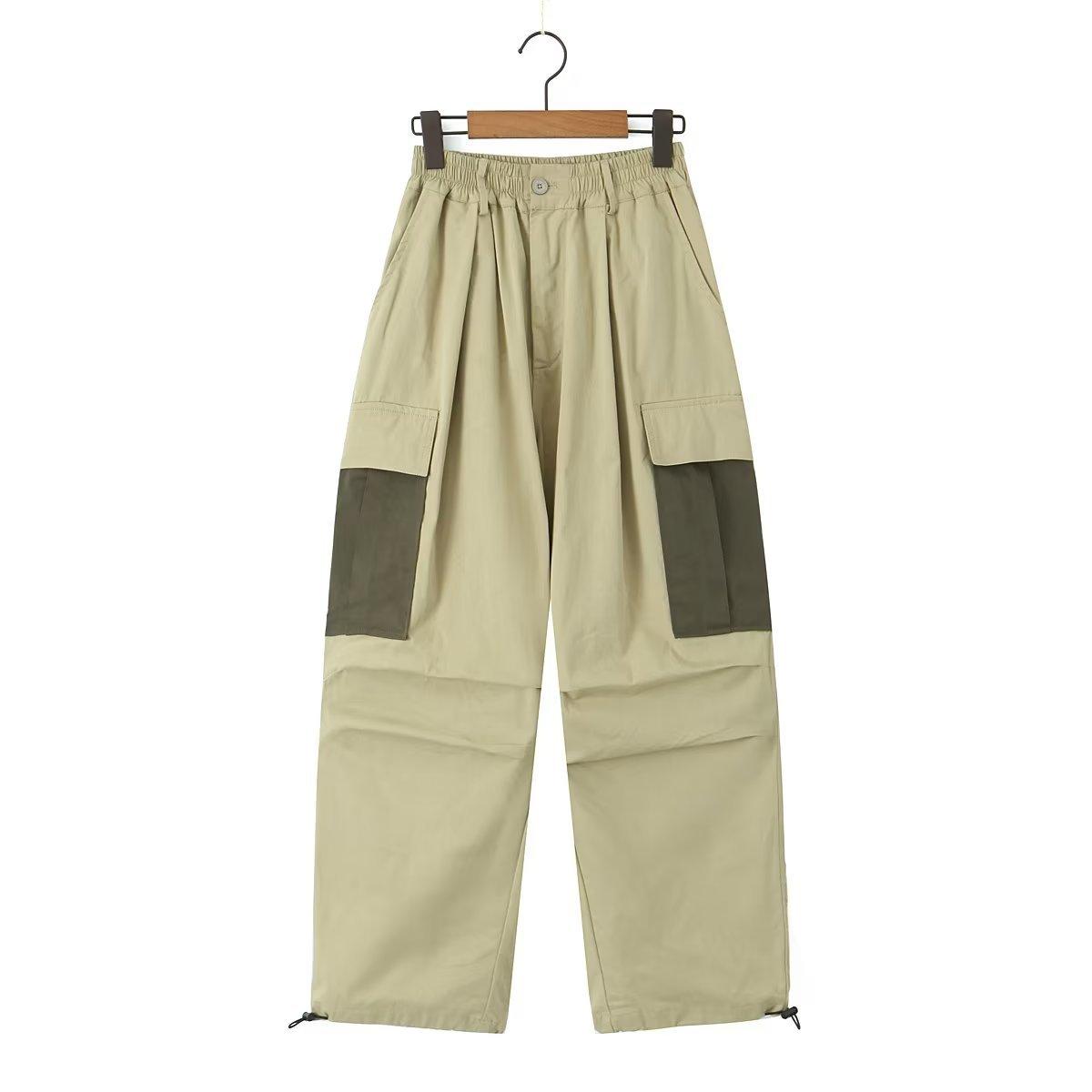 Ropa de mujer europea y americana 2023 Verano nuevo vintage calle frita combinación de colores suelto elástico cintura alta delgado pierna ancha overol
