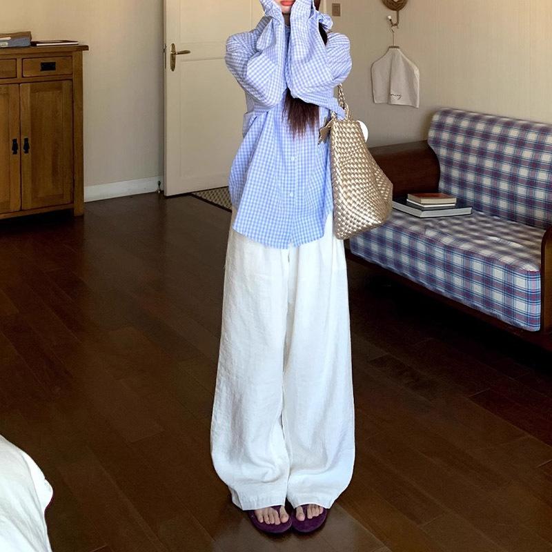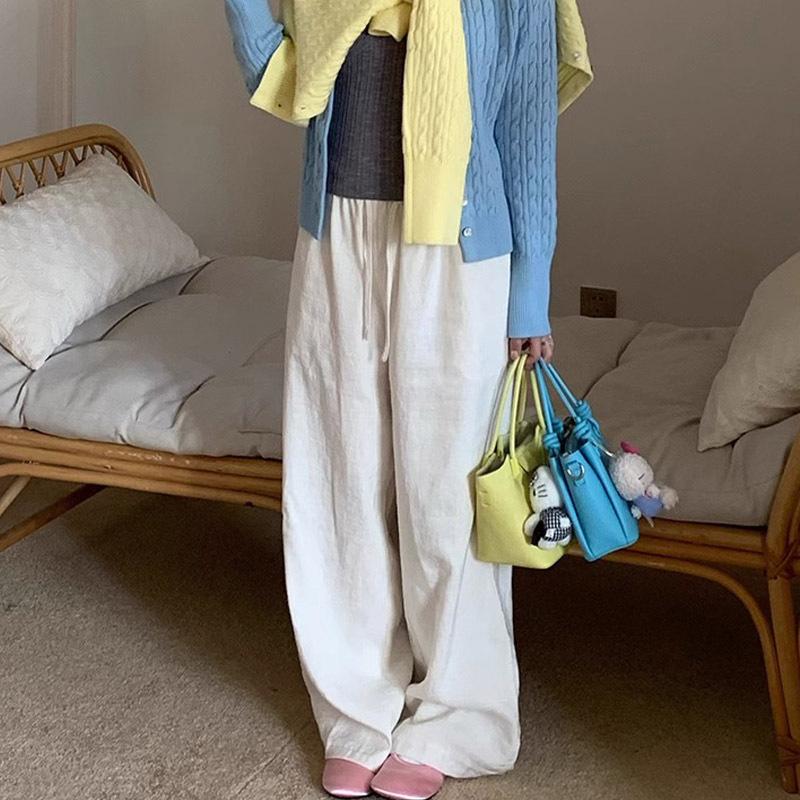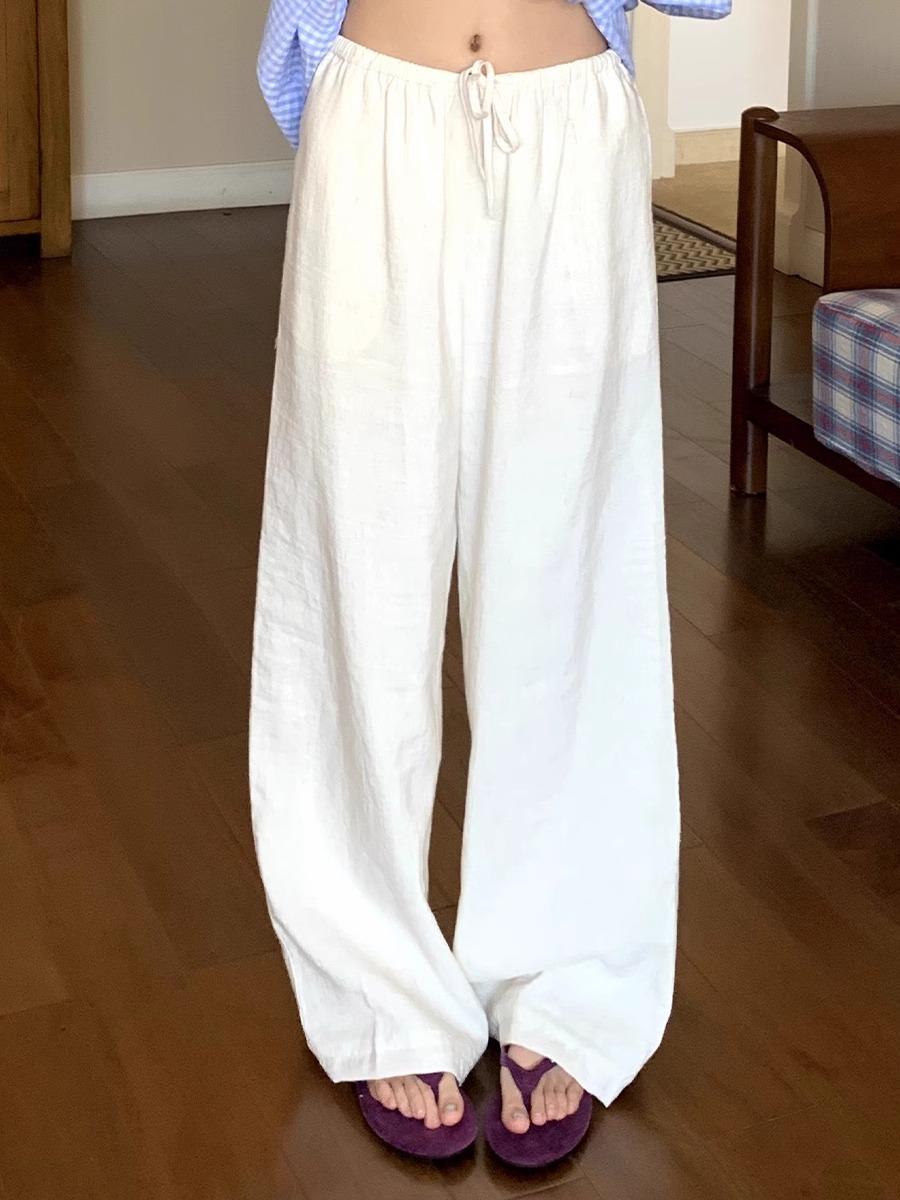 Pantalones Casuales de Algodón y Lino Estilo Blanco para Mujer Primavera y Verano 2025 Nuevo Holgado Adelgazante Combinable Cintura Elástica Holgada Pantalones de Pierna Ancha