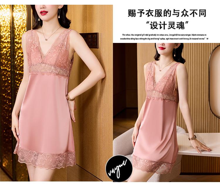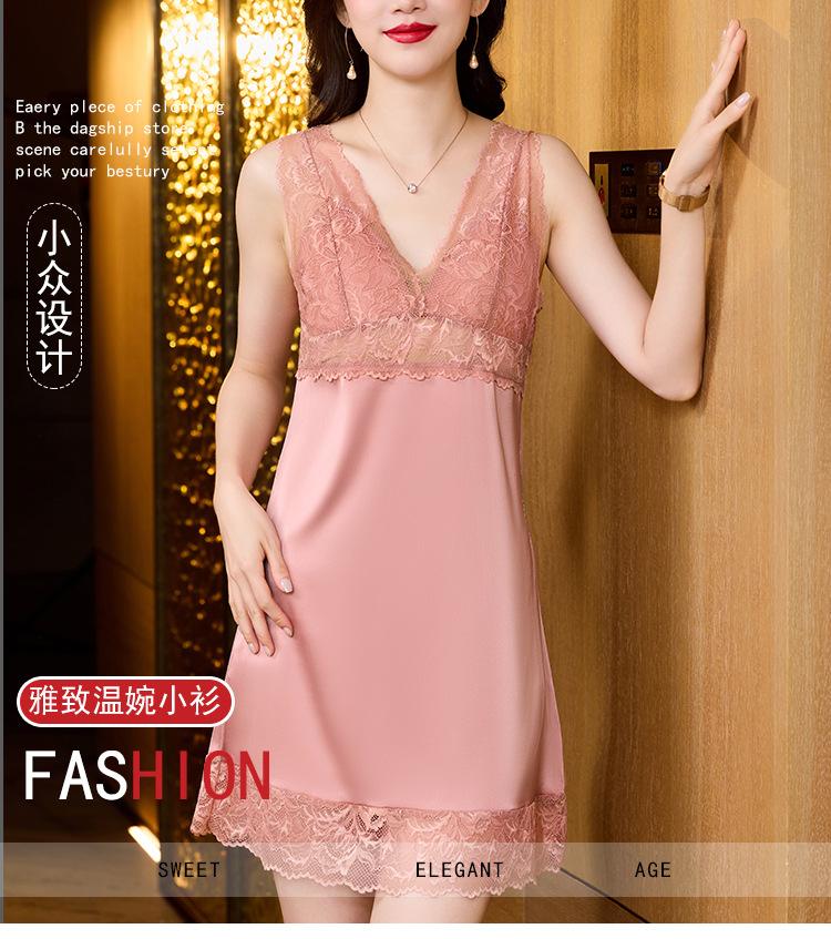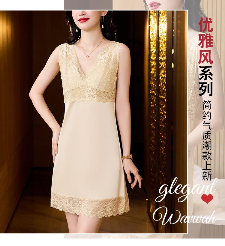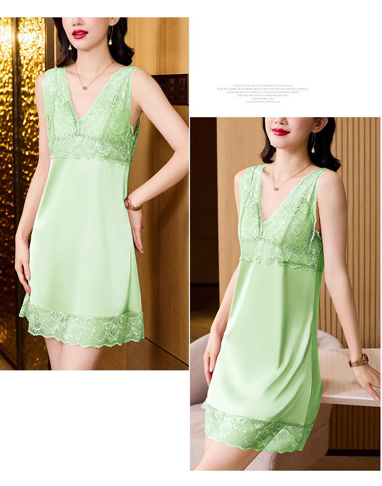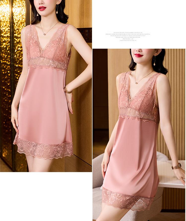 Pijama de Tirantes de Seda, Camisón Sexy de Verano para Mujer de Alta Gama, Seda Fina de Morera con Almohadillas para el Busto, Ropa para el Hogar