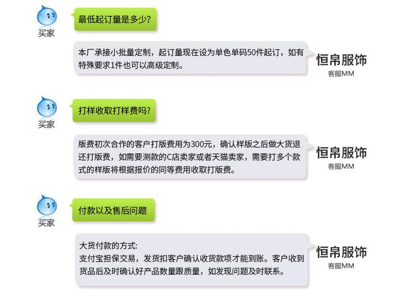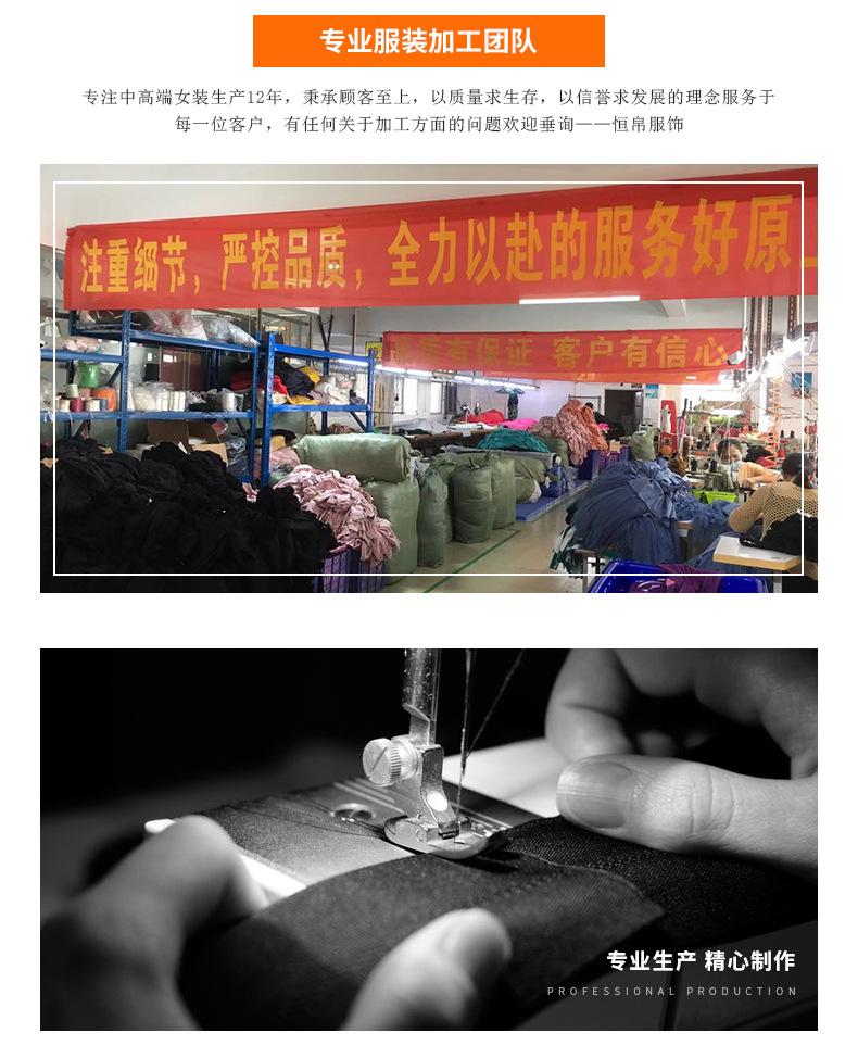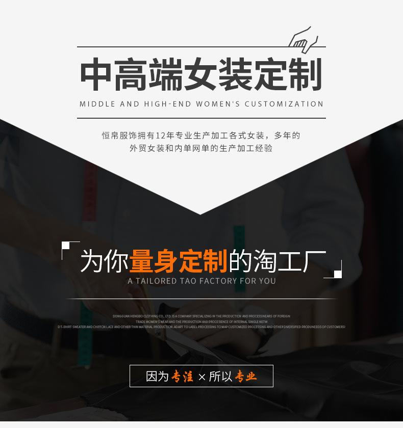 Dongguan Hengbo Garment Co., Ltd. es una empresa con 12 años de producción y procesamiento profesional de diversas prendas de vestir para mujer, con muchos años de experiencia en comercio exterior de ropa de mujer y producción y procesamiento de pedidos en línea nacionales. Se especializa en la producción de diversos tejidos de punto, camisetas, sudaderas, así como materiales medianos-delgados como chiffon y encaje. ¡Se adapta a modos de producción diversificados como procesamiento de marca OEM, diseño personalizado con dibujos y fabricación por encargo para satisfacer las diferentes necesidades de los clientes!
