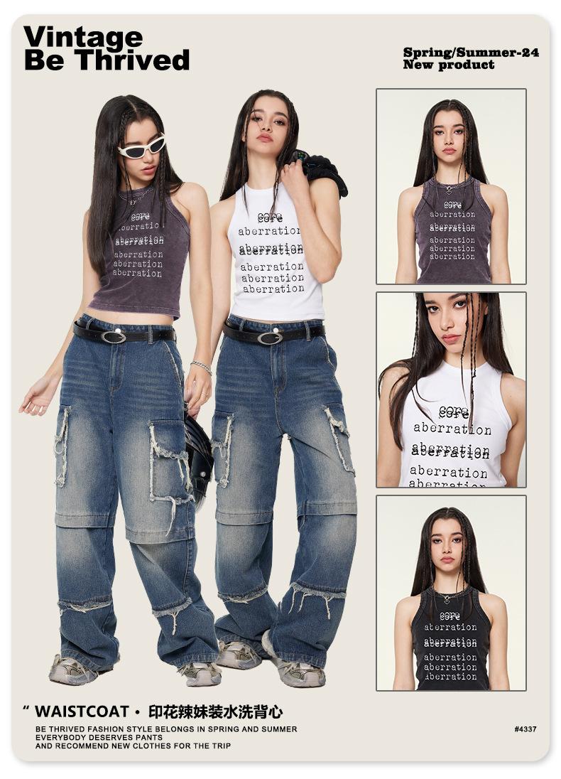 BE Ropa de Mujer 2025 Primavera y Verano Marca de Moda Urbana Americana Transfronteriza Chica Hot Estampado de Alfabeto Exterior Lavable para Mujer