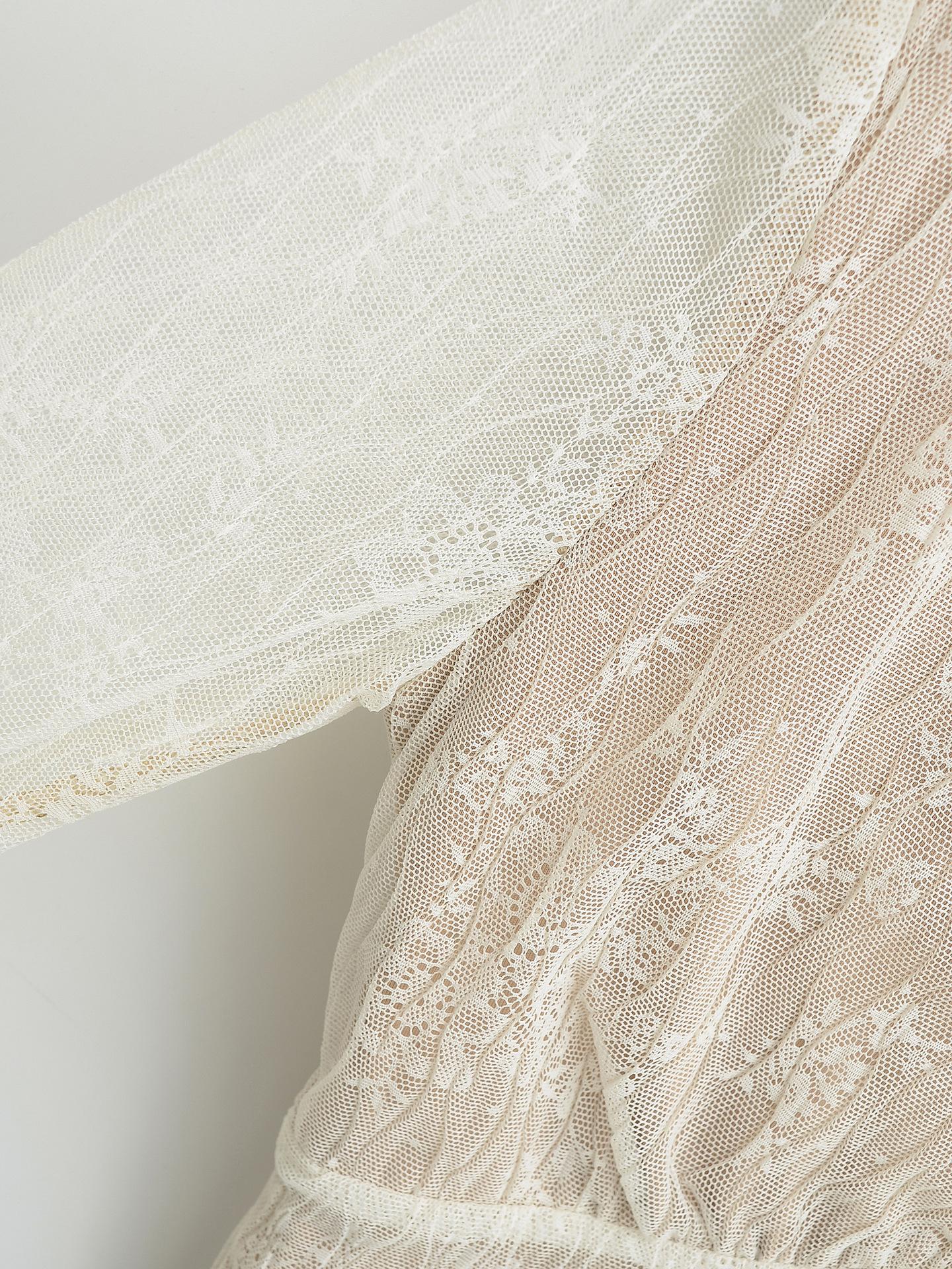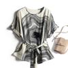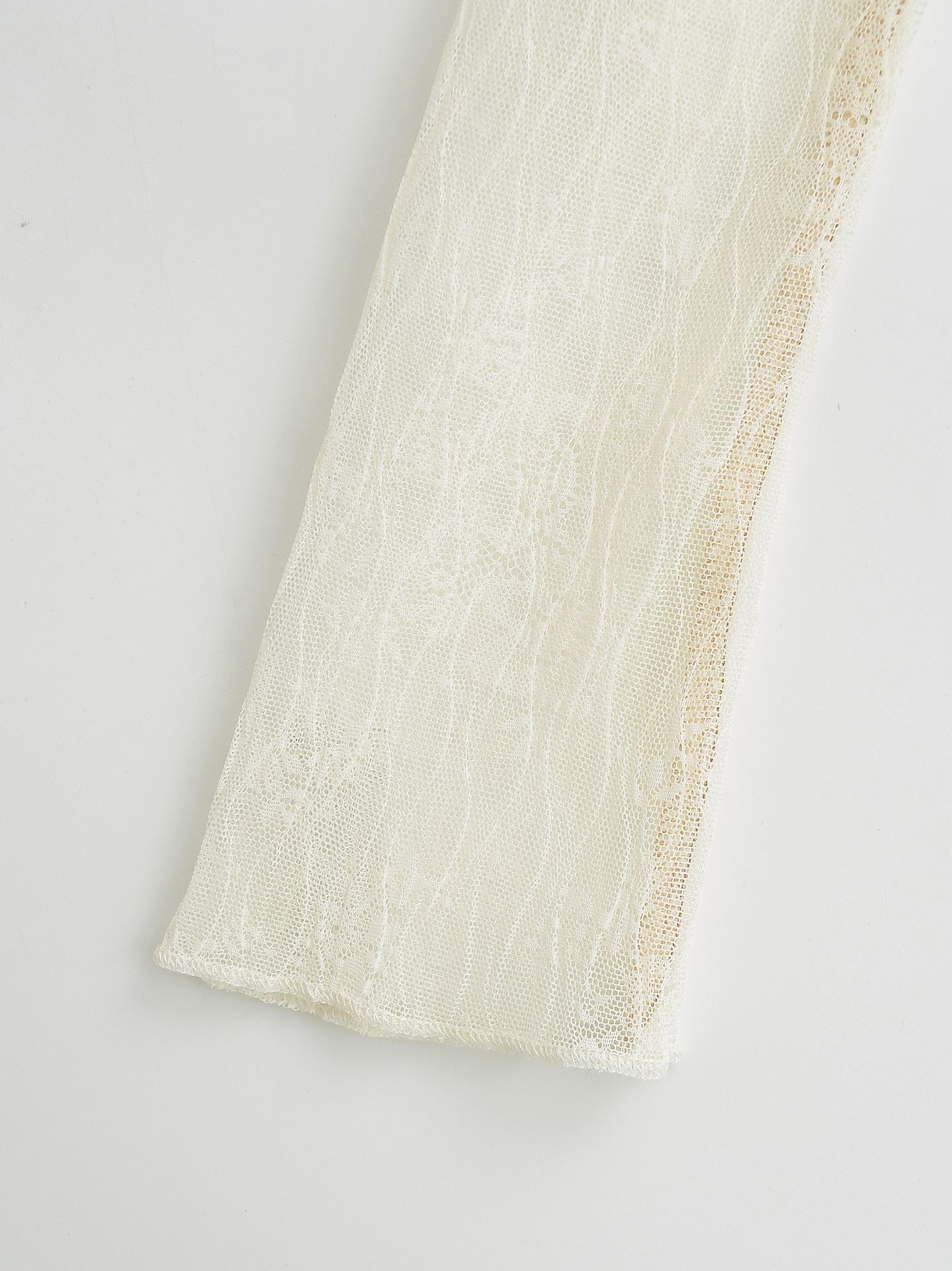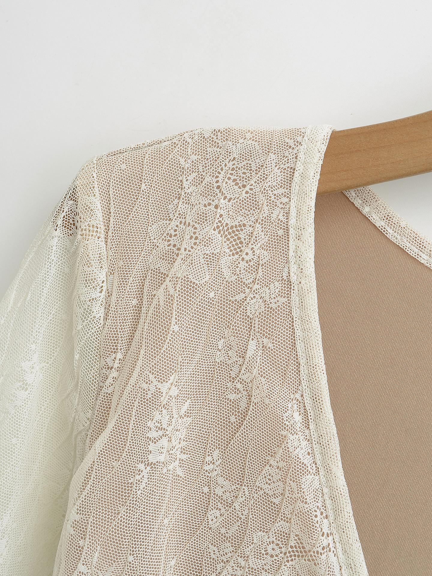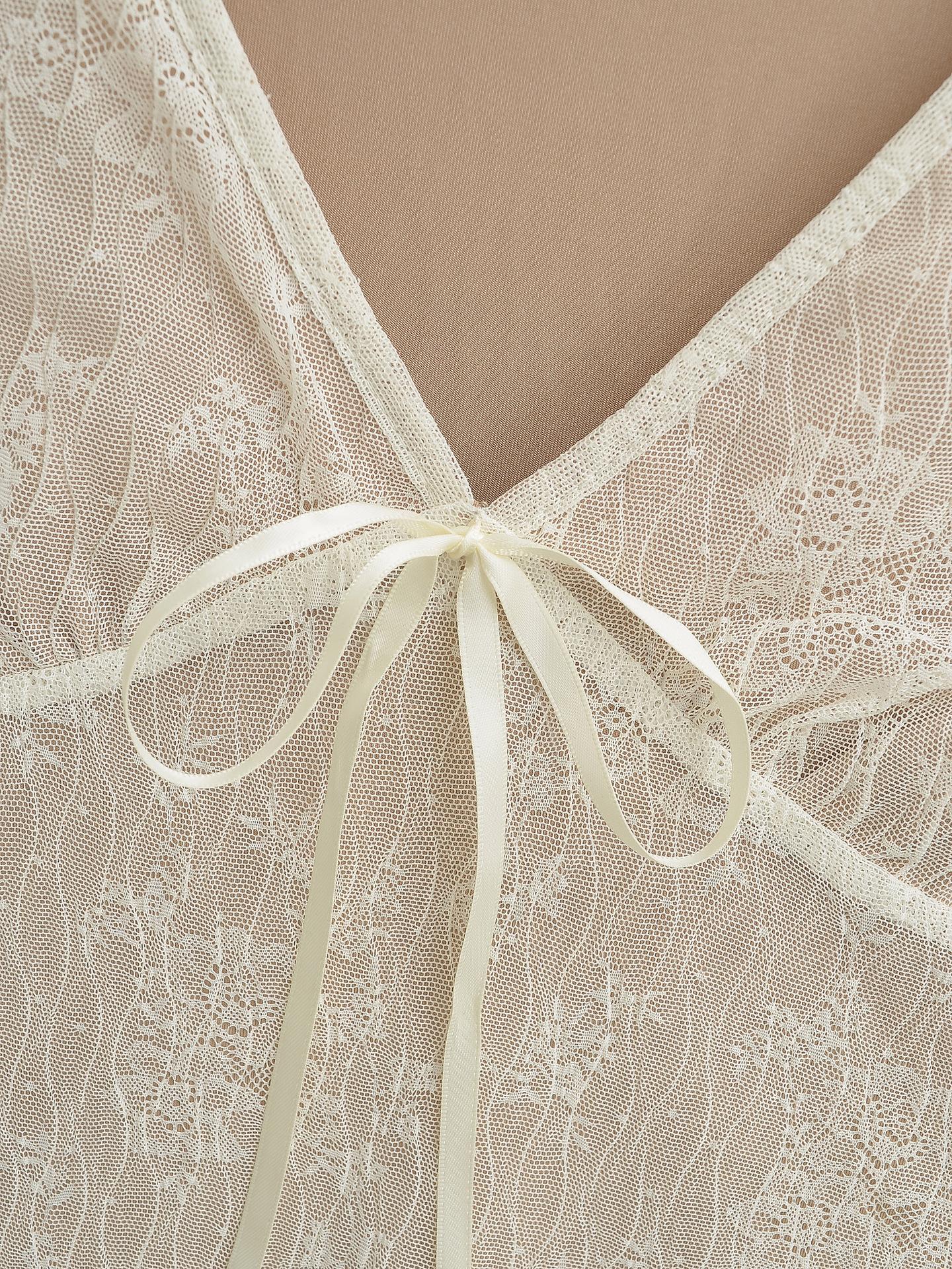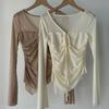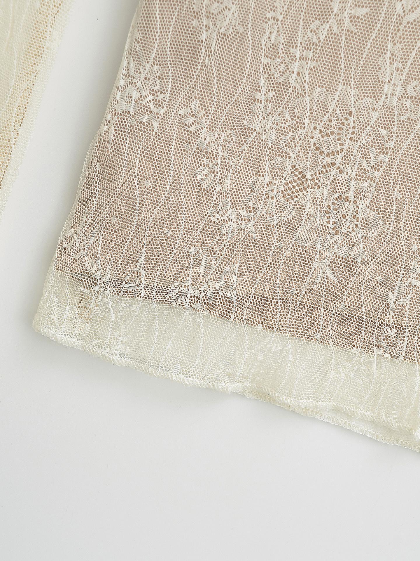 2522-25 Estilo de Verano Deseo Puro Chica Caliente Cuello en V Lazo Encaje Manga Larga Camiseta para Mujer Corte Ajustado Corto Hombro Regular Top