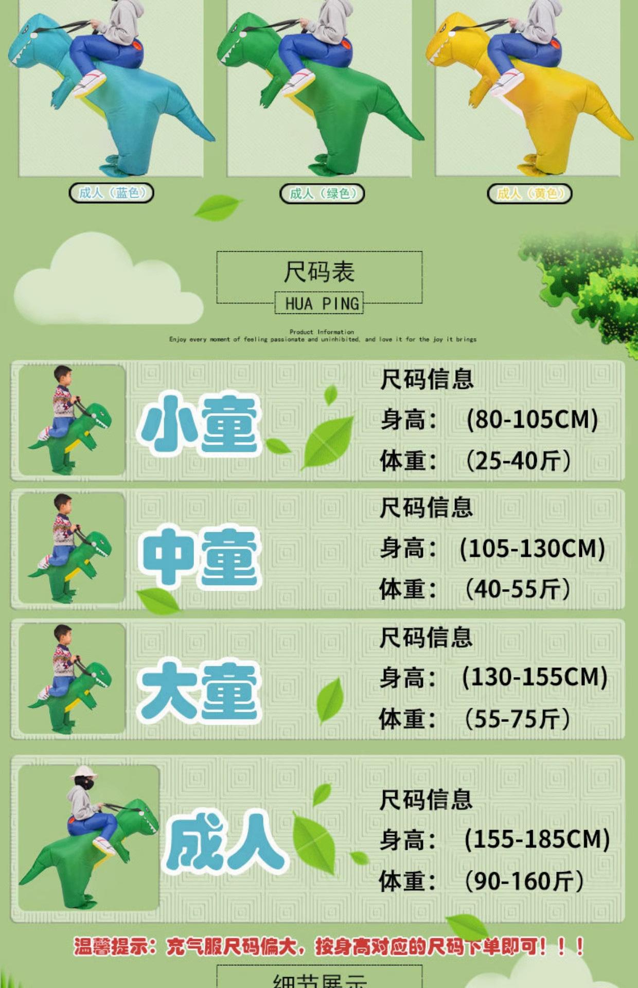 Green Dinosaur-Kid, Green Dinosaur-Zhongtong, Green Dinosaur-Big Boy, Green Dinosaur-Adult, Orange Dinosaur-Ki...