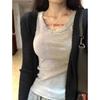 Chaleco de Tirantes con Hilo para Mujer Primavera Verano Otoño Nuevo Color Sólido Top Simple Casual Deportivo Interior Camiseta Base