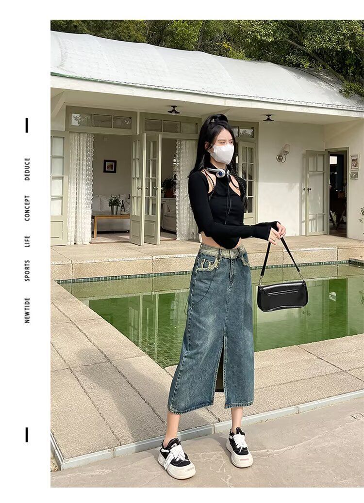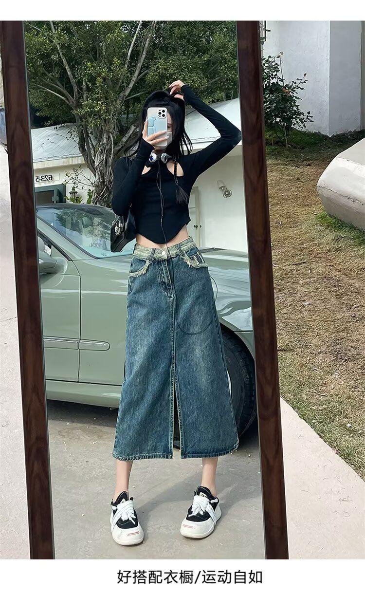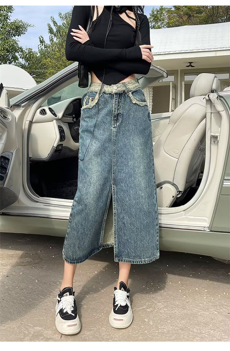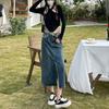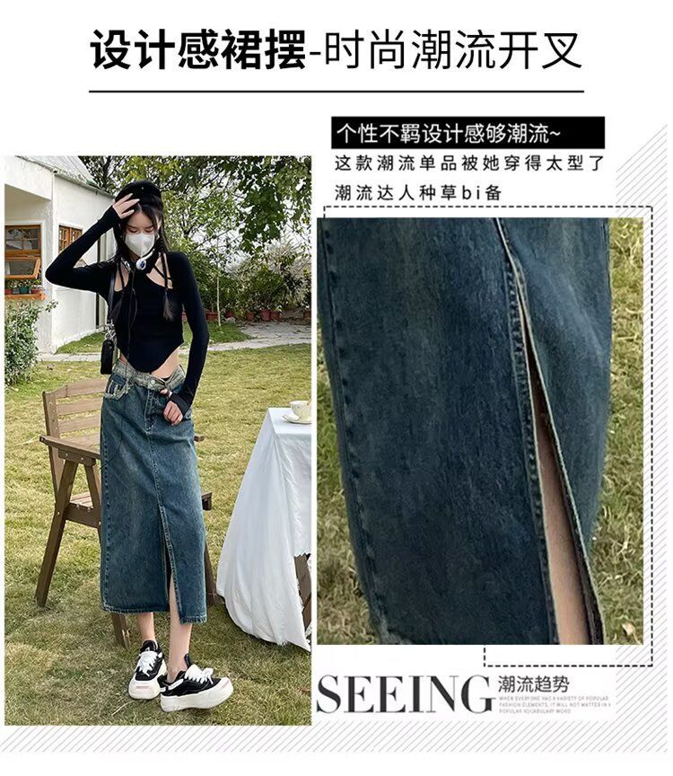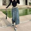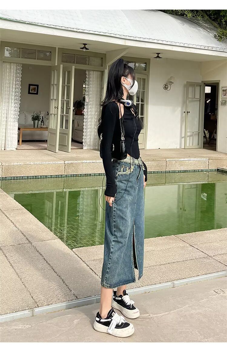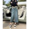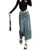 Falda de Mezclilla Retro de Cintura Alta para Mujer Verano Estilo Delgado 2025 Nueva Adelgazante A-line Bodycon Abertura Falda Midi