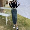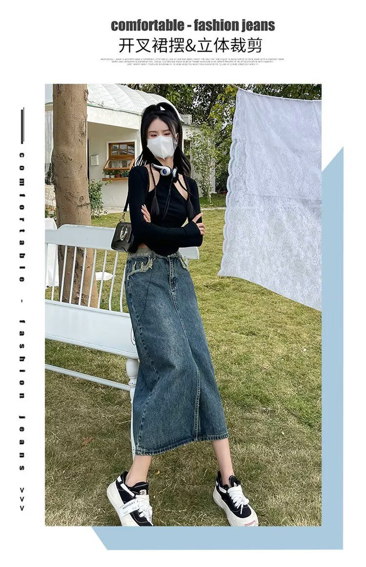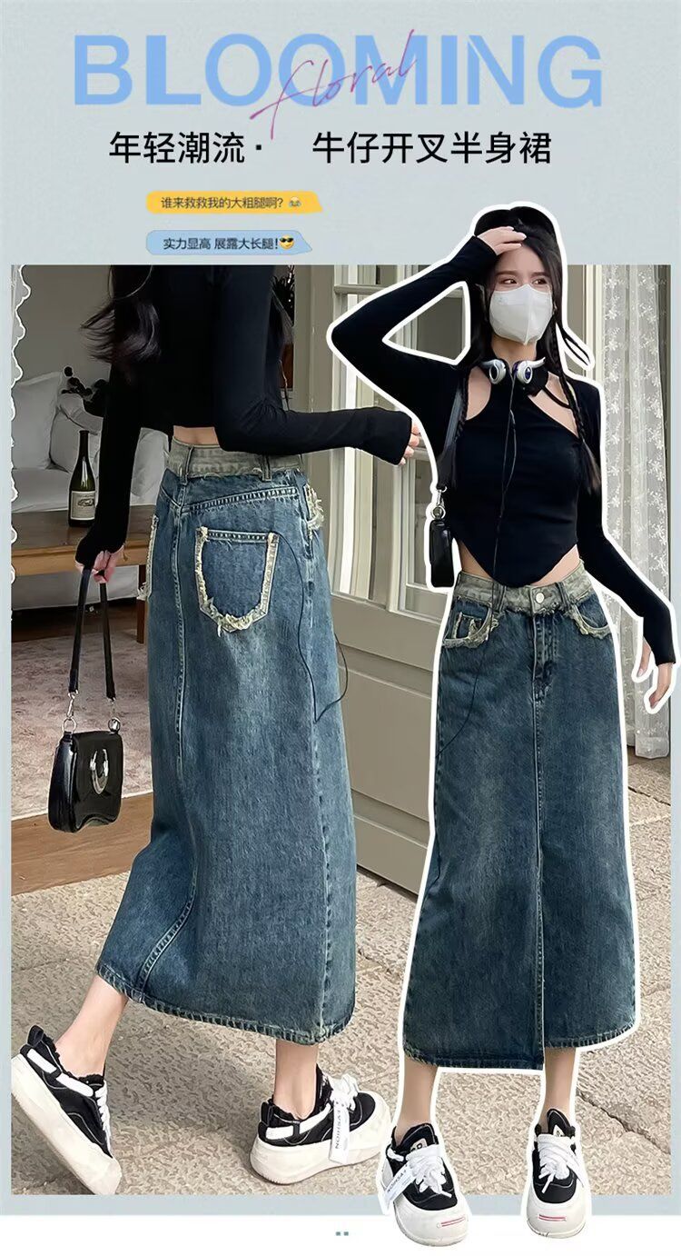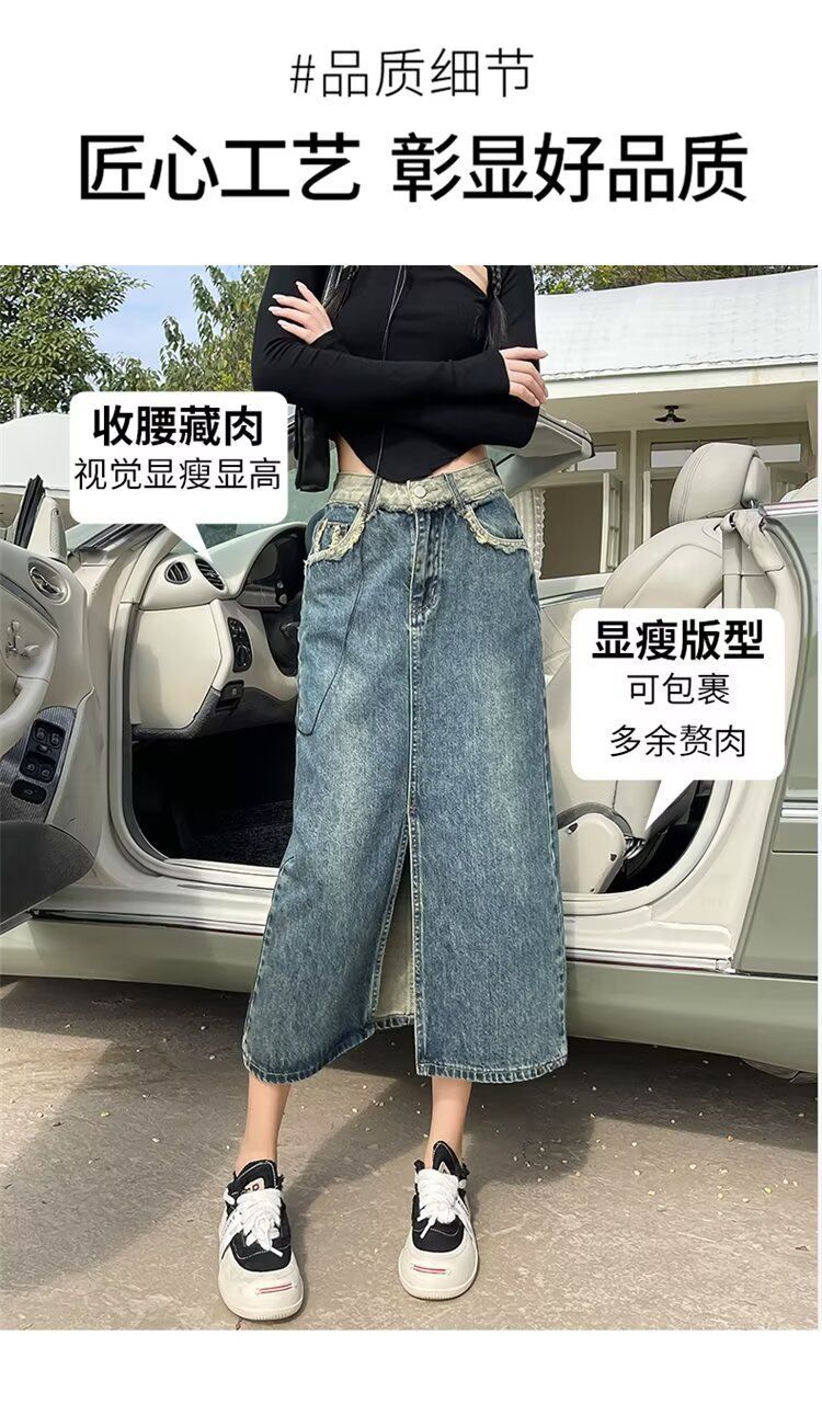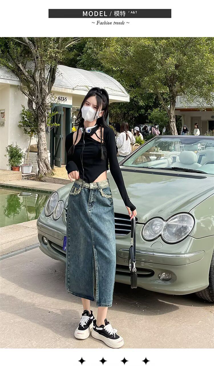 Falda de Mezclilla Retro de Cintura Alta para Mujer Verano Estilo Delgado 2025 Nueva Adelgazante A-line Bodycon Abertura Falda Midi