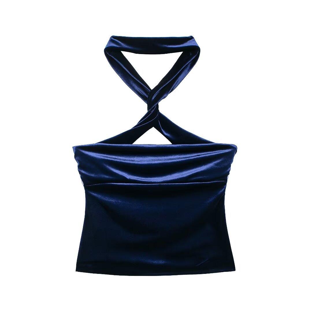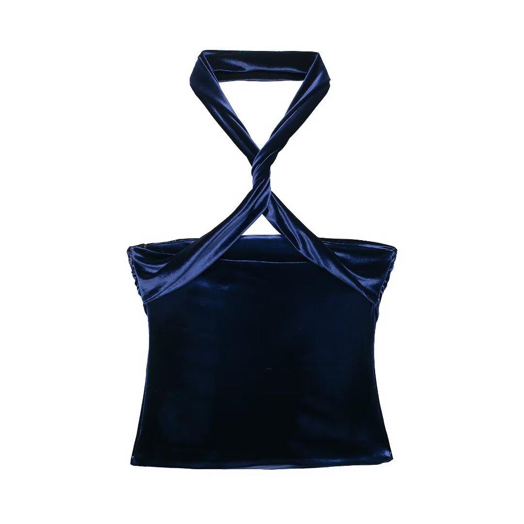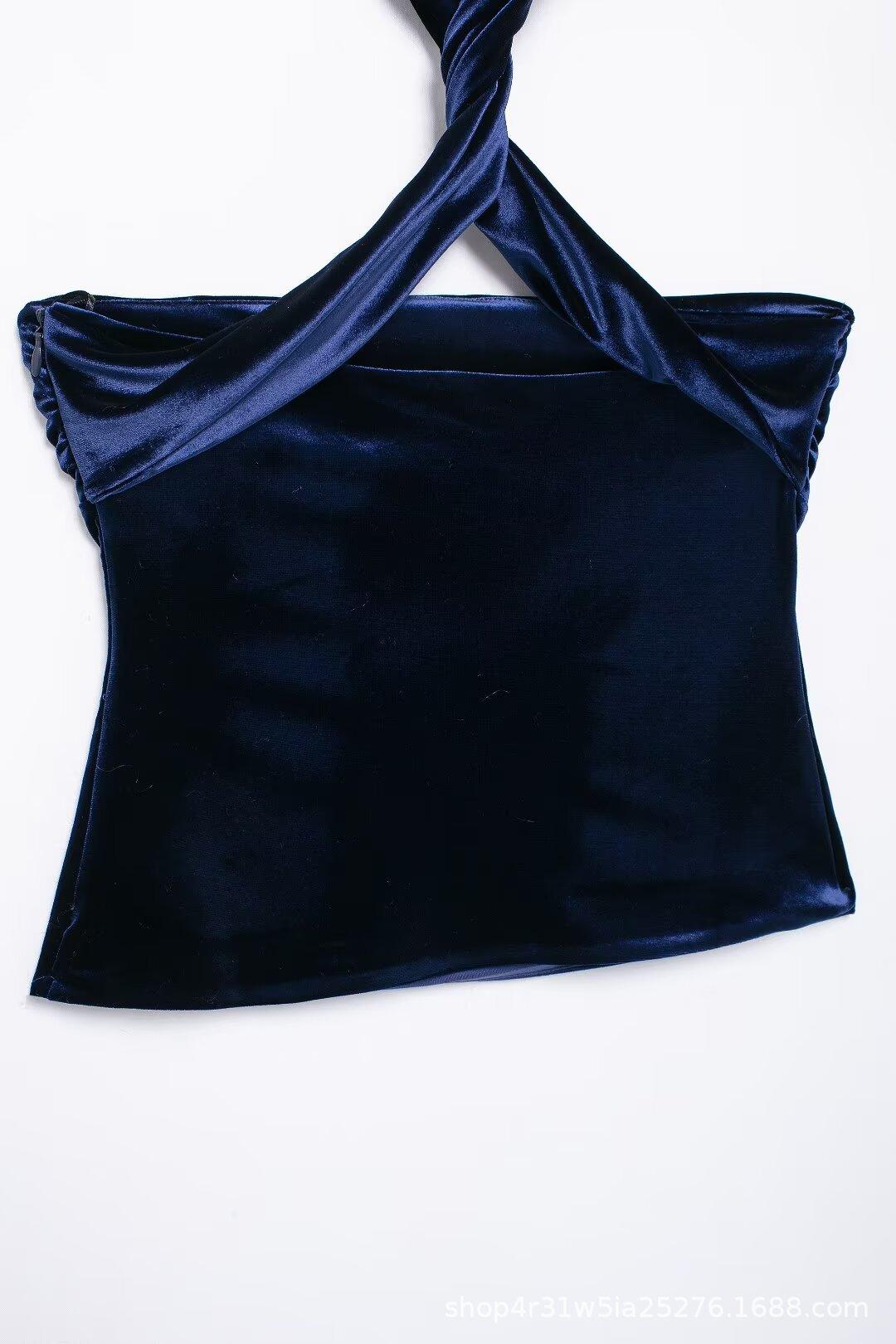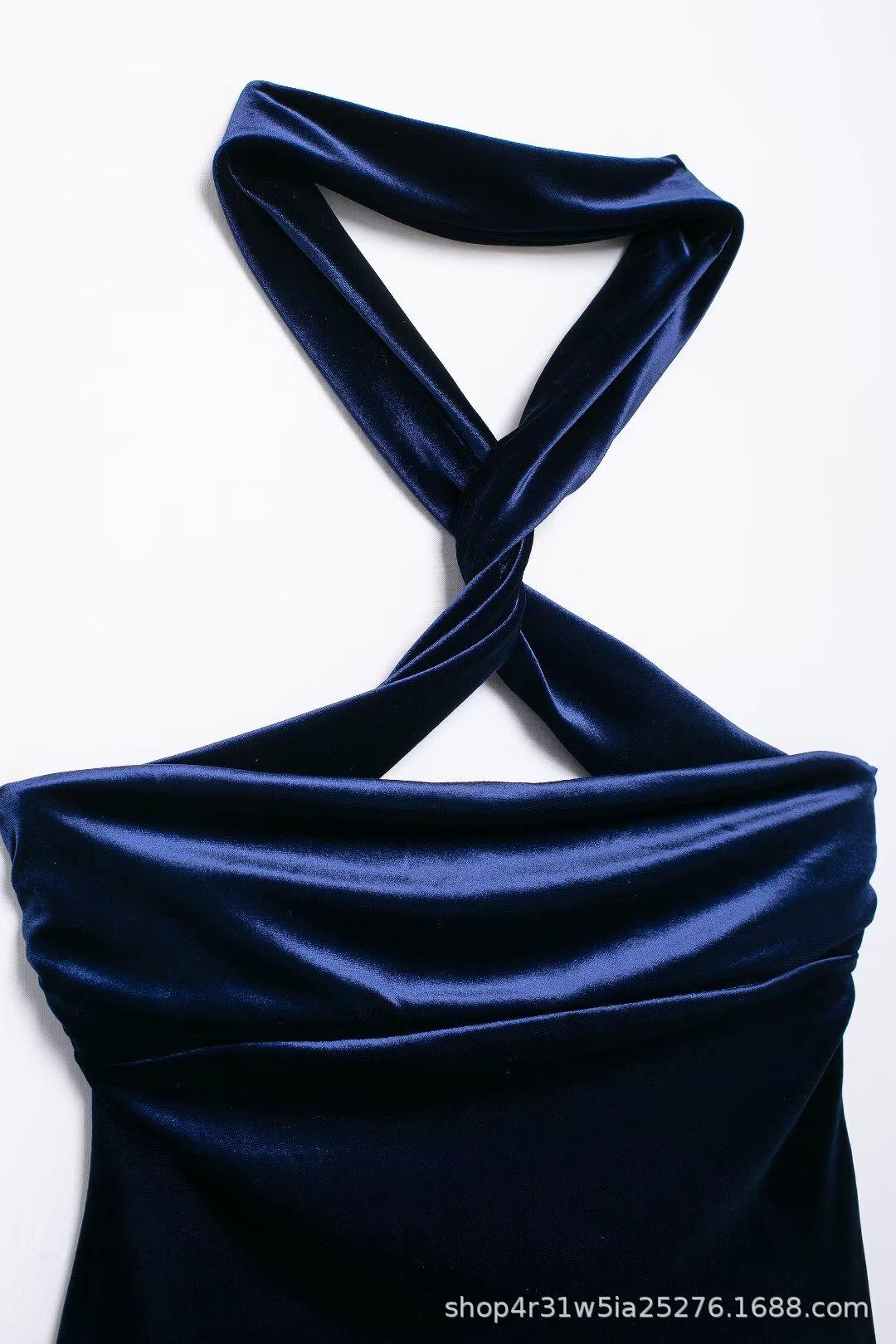 Estilo europeo y americano al por mayor transfronterizo 2024 otoño nuevo top de cuello sin mangas ajustado de terciopelo con temperamento para mujer