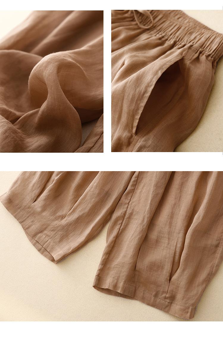 Foto real Primavera y Verano 2025 Nuevo Artístico Retro Color Sólido Algodón y Lino Bombachos Holgados Adelgazantes Casuales Pantalones Recortados Doble Capa
