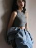 Camisola de Estilo Europeo y Americano para Chica Sexy, Adecuada tanto para Uso Interior como Exterior, Top Camiseta Base Ajustada Corta Negra sin Mangas con Espalda Deportiva