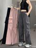 Pantalones Cargo Americanos de Cintura Alta para Mujer Primavera y Verano 2025 Nuevos Sueltos Rectos Casual de Secado Rápido Petite Pierna Ancha