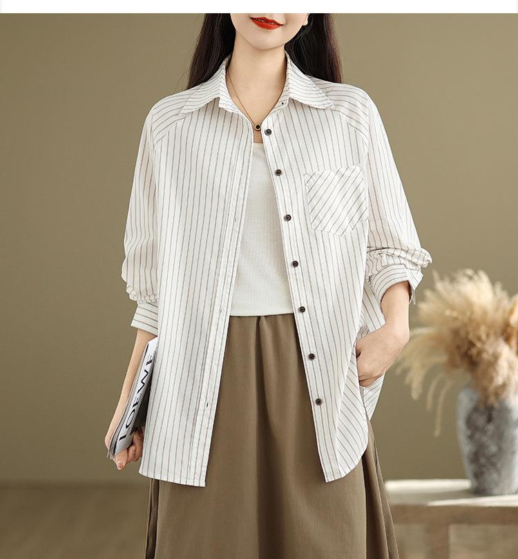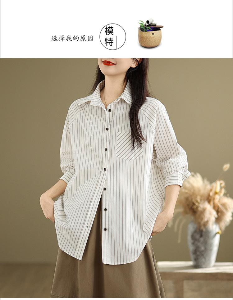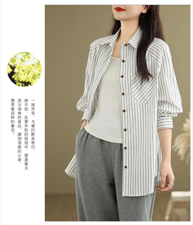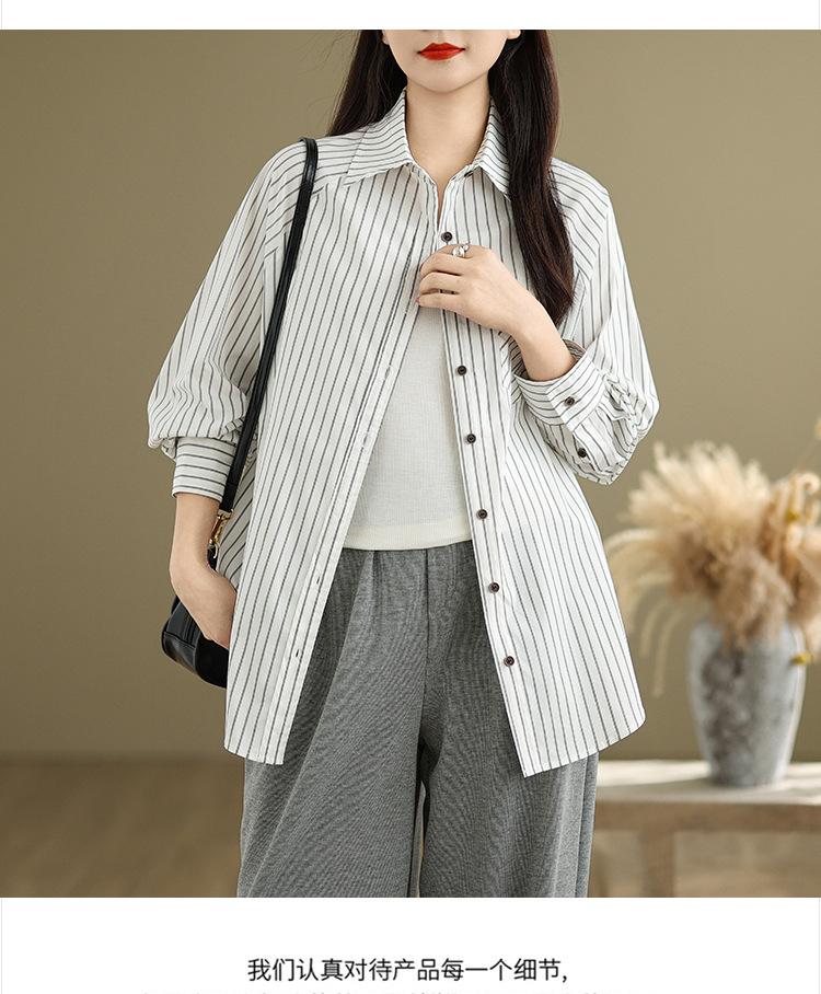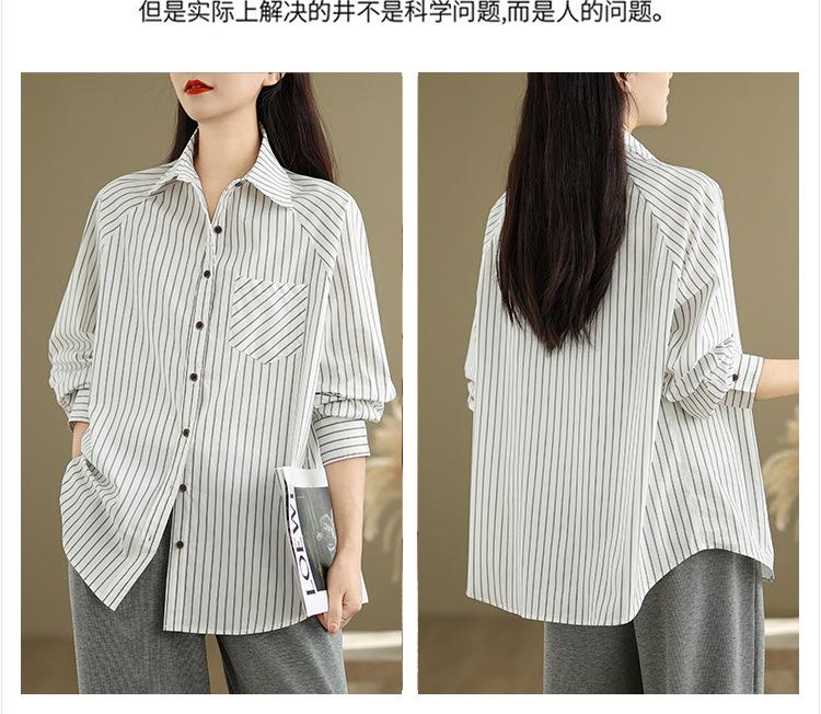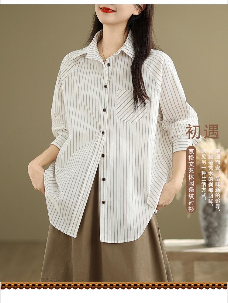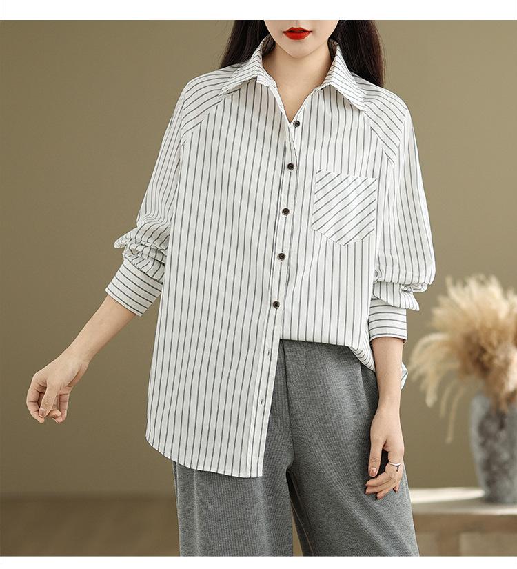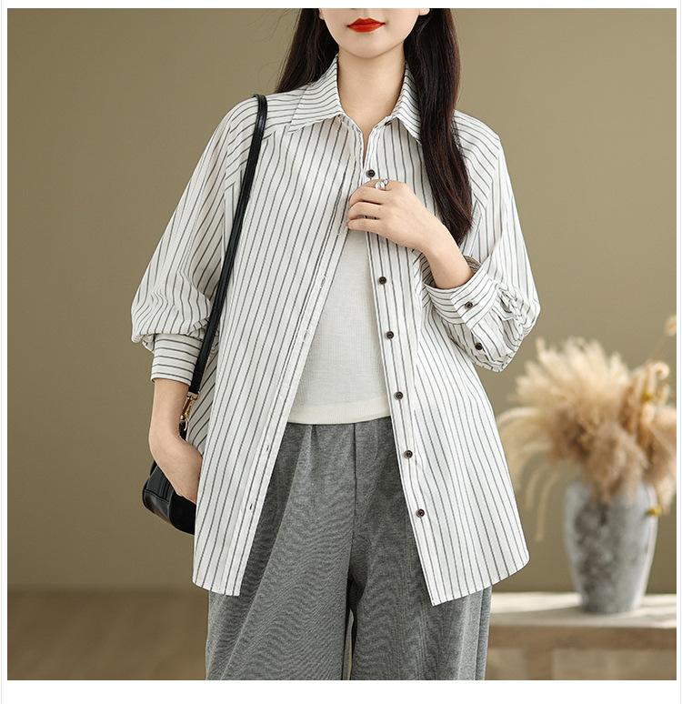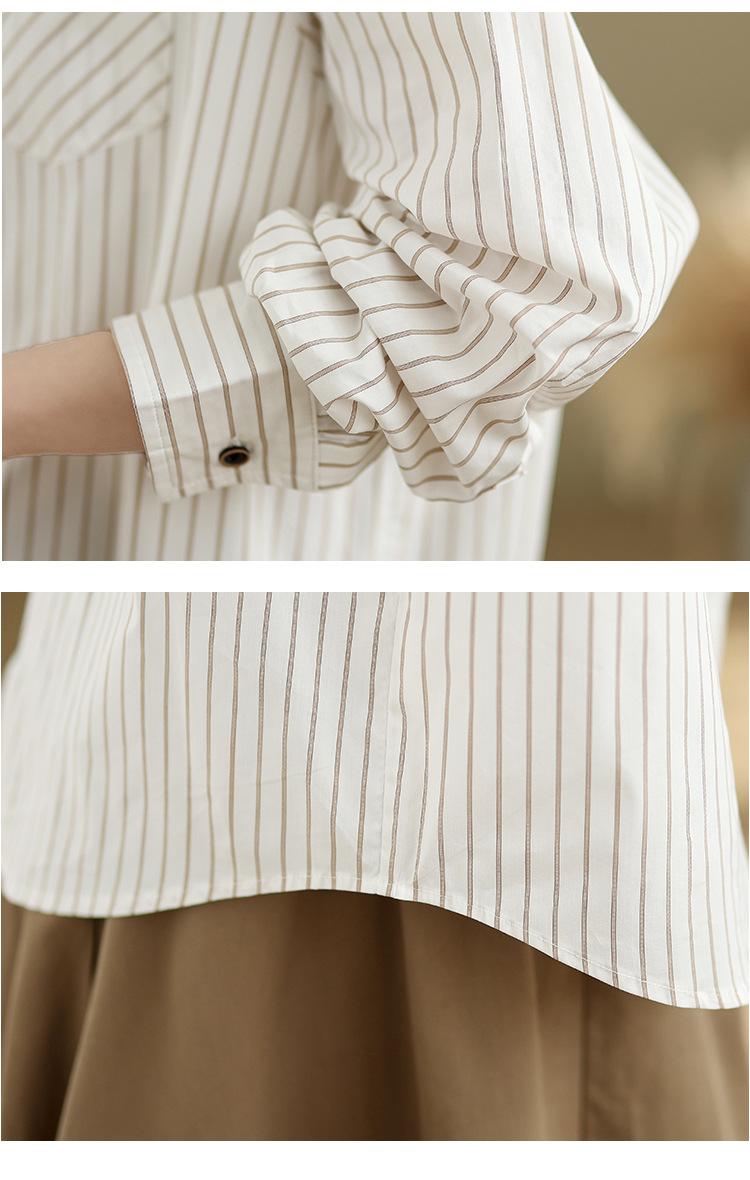 Foto Real Camisa de Manga Larga a Rayas Blancas para Mujer Otoño 2025 Nuevo Top Casual Holgado Interior