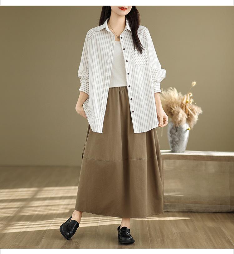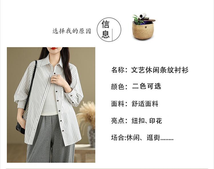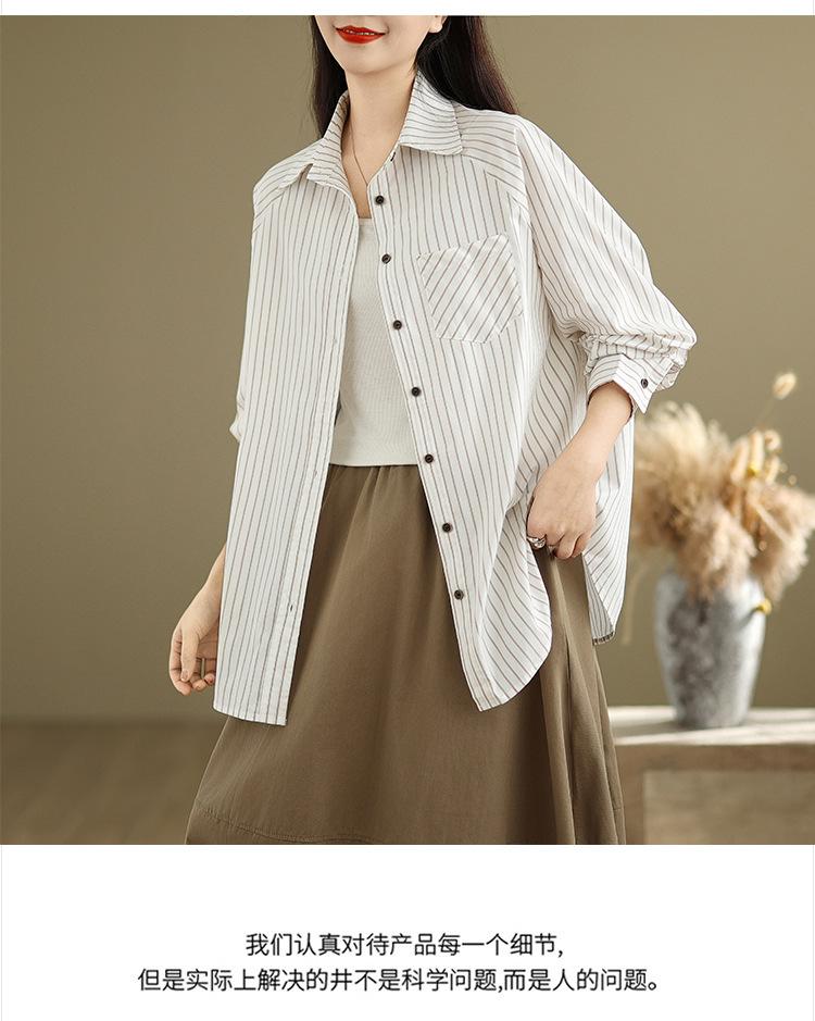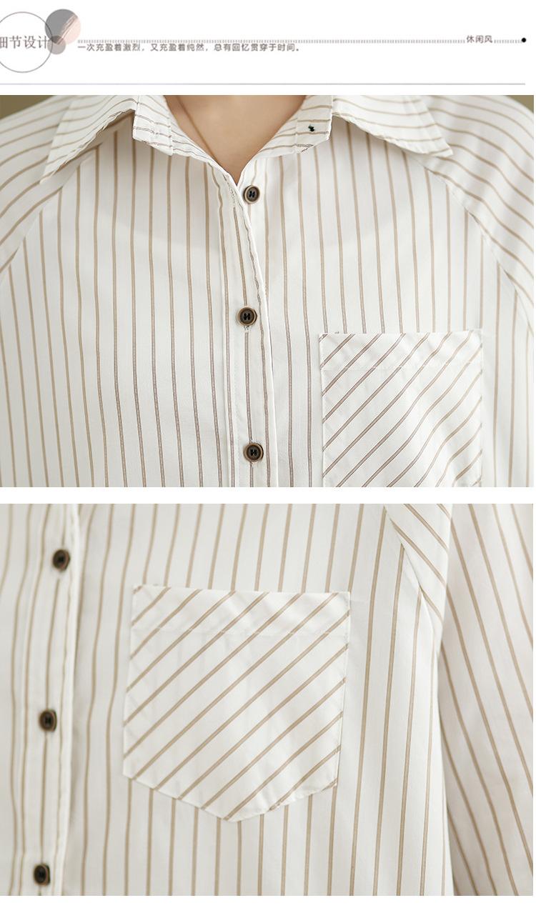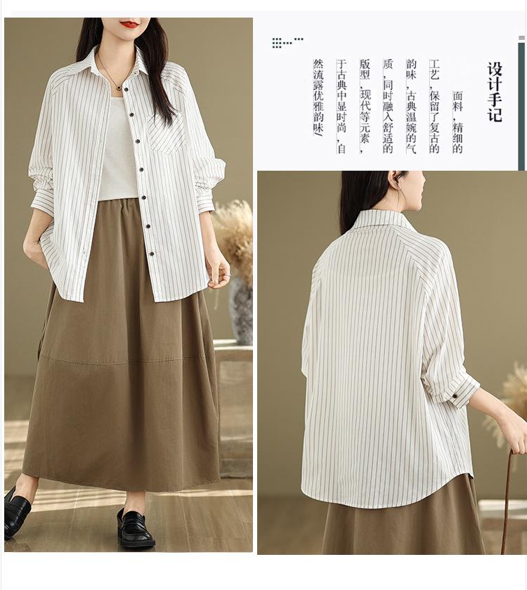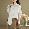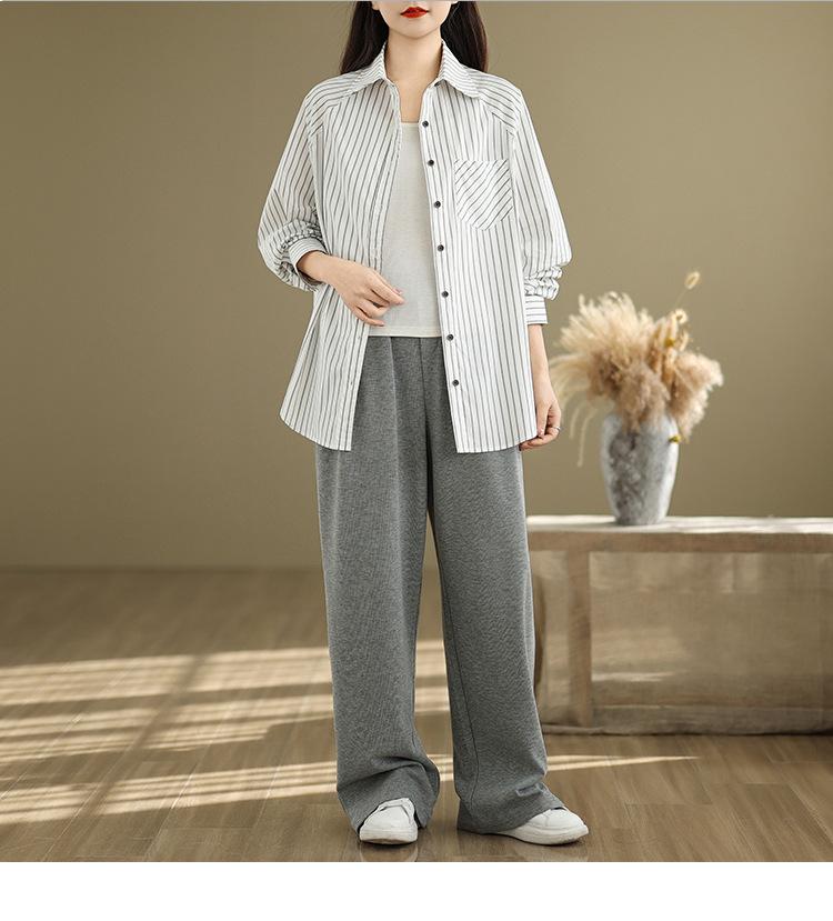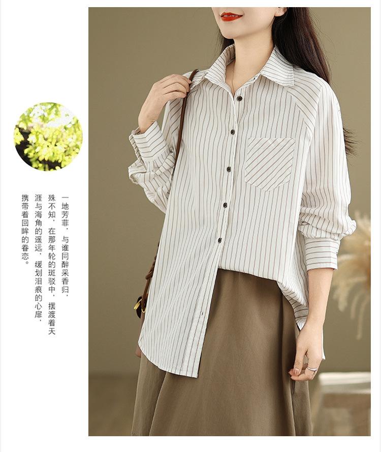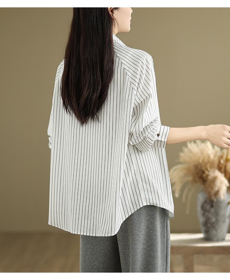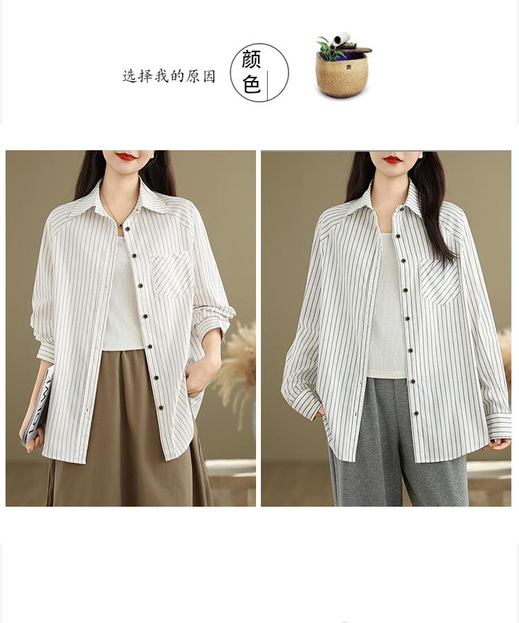 Foto Real Camisa de Manga Larga a Rayas Blancas para Mujer Otoño 2025 Nuevo Top Casual Holgado Interior