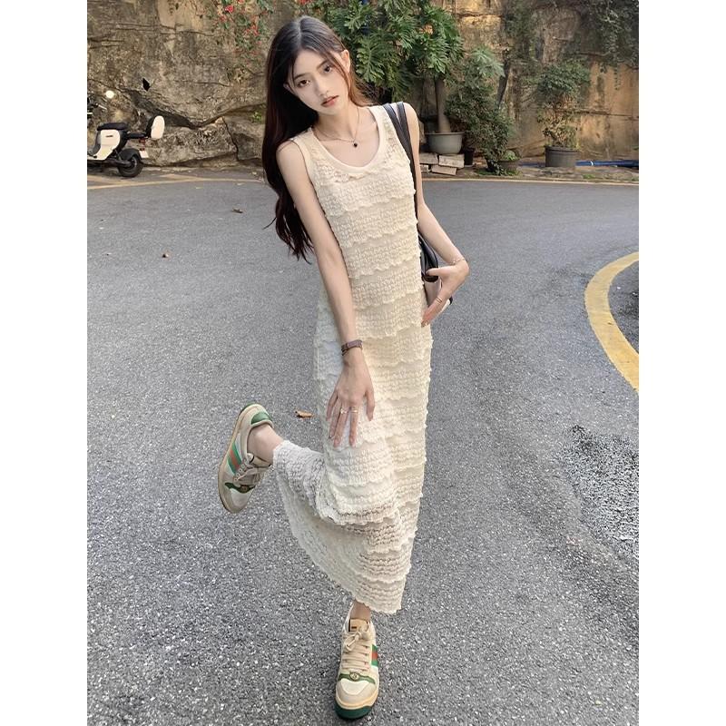 Vestido Coreano de Estilo Francés con Tirantes Cruzados para Mujer Verano Nueva Moda Hora del Té Temperamento Adelgazante de Alta Gama Falda Larga