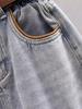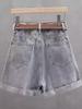Shorts de mezclilla de talle alto con dobladillo rizado y cintura elástica de talla grande para mujer 2025 verano talle alto corte holgado adelgazante línea A pierna ancha pantalones cortos