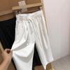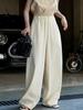 Pantalones de Verano Frescos y Fáciles de Llevar de Pierna Ancha para Mujer, Color Sólido Blanco y Negro, Cintura Elástica con Cordón Ajustable, Pantalones Casuales Sueltos Anchos Adelgazantes Recortados