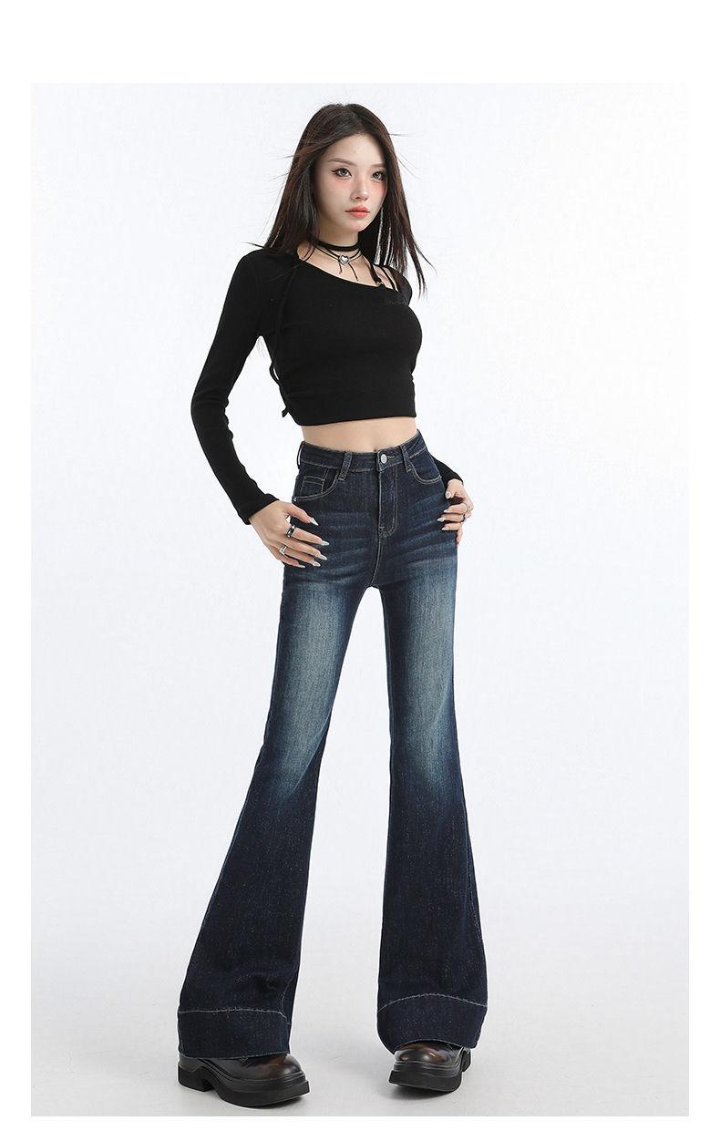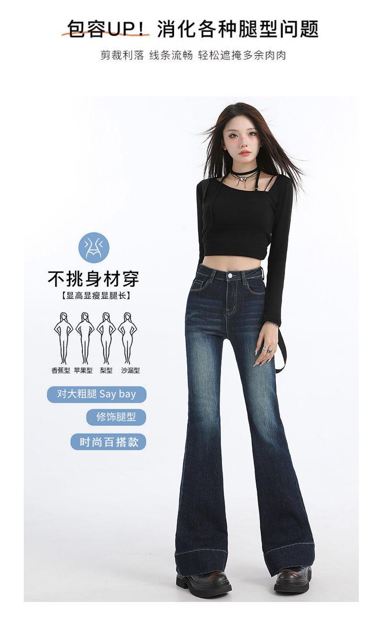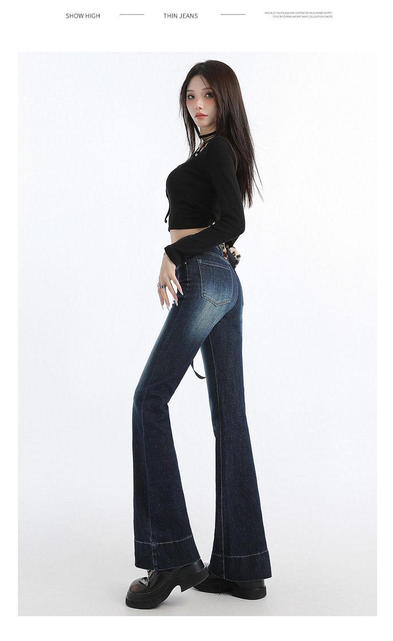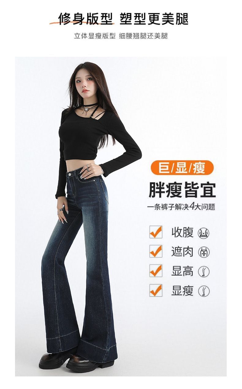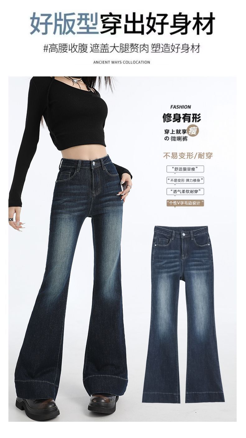 Compra Jeans pitillo acampanados de cintura alta para mujer 2025 primavera y otoño nuevos elásticos adelgazantes corte ajustado pierna ancha pantalones de herradura al por mayor en Joom.pro