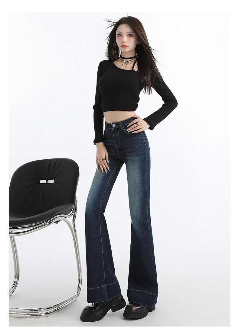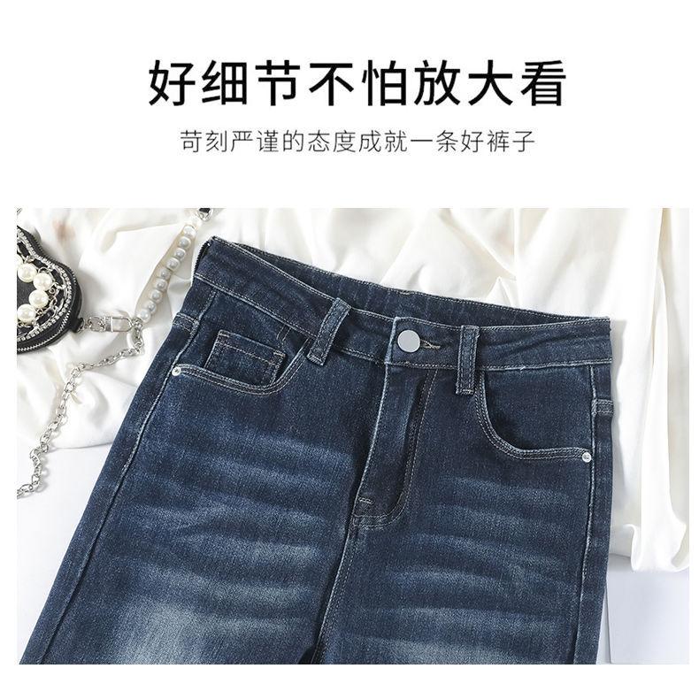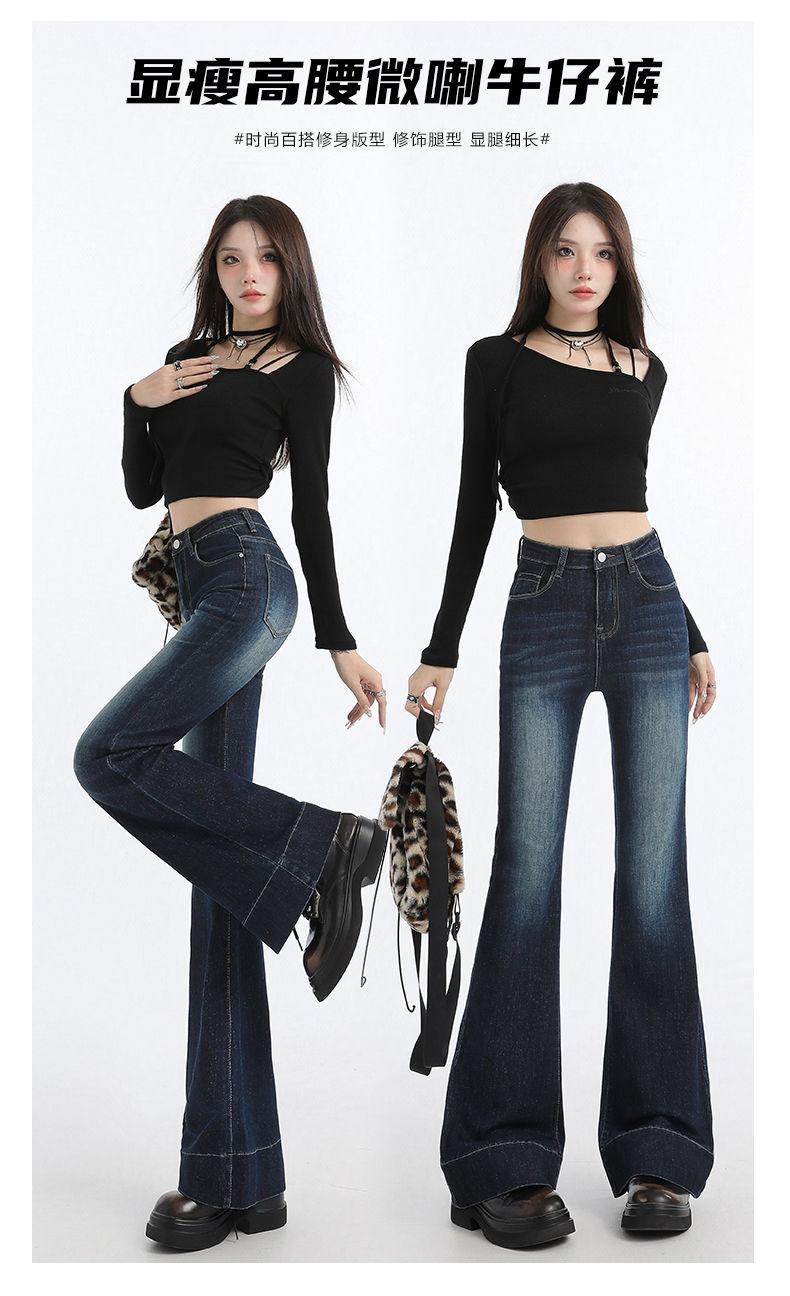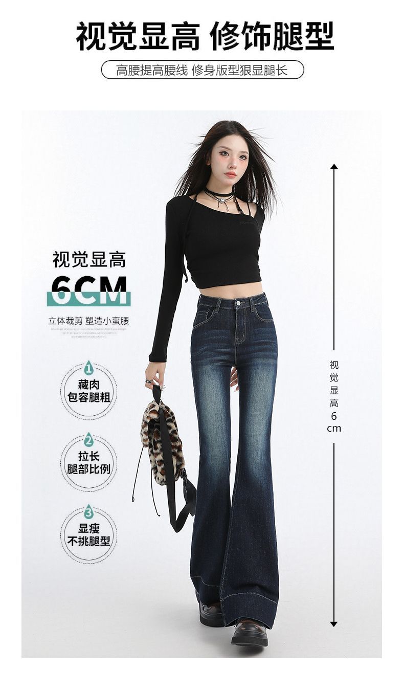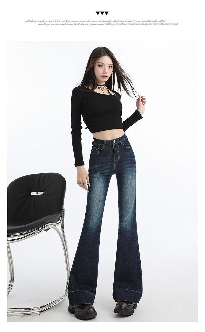 Compra Jeans pitillo acampanados de cintura alta para mujer 2025 primavera y otoño nuevos elásticos adelgazantes corte ajustado pierna ancha pantalones de herradura al por mayor en Joom.pro