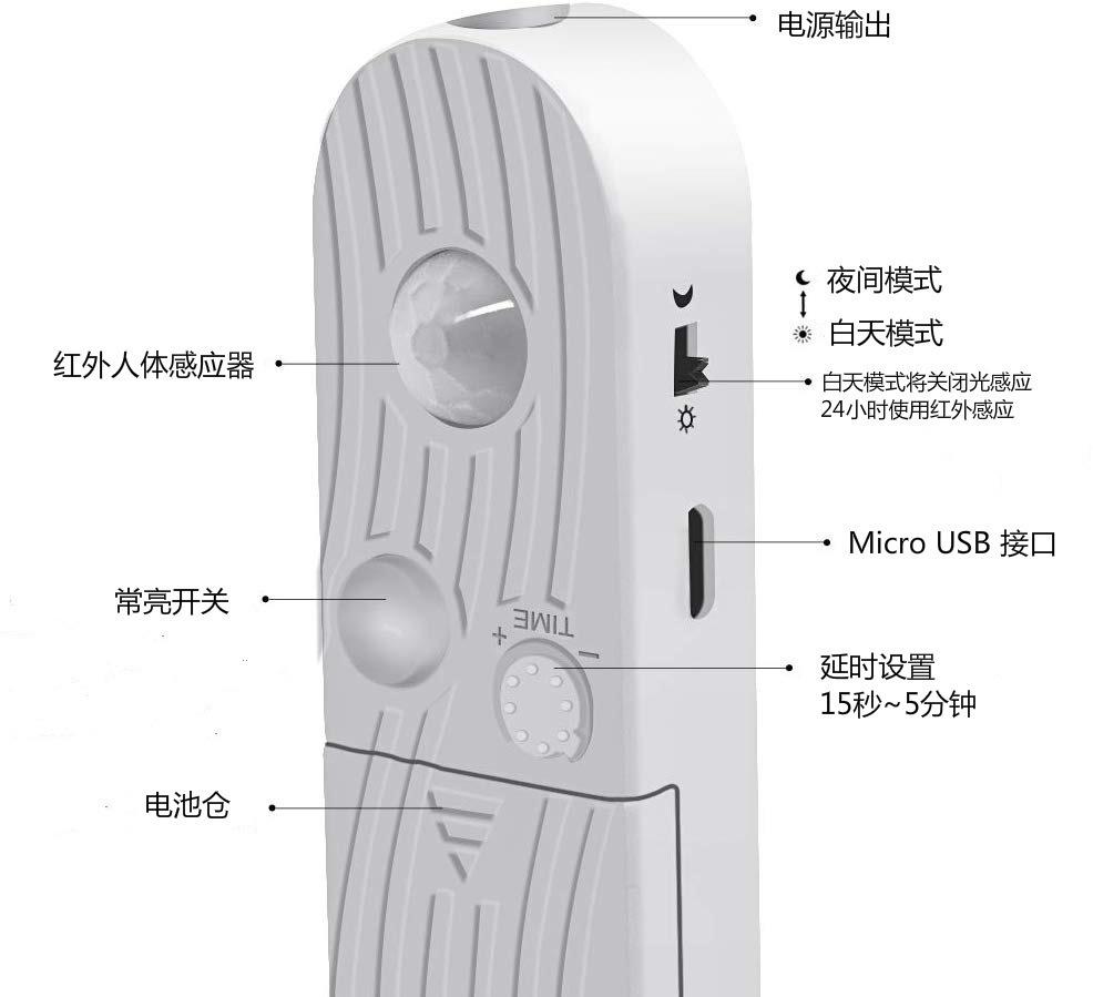 Luz inteligente de inducción del cuerpo humano con luz nocturna de inducción infrarroja LED, caja de batería de 5V, barra de luz suave para armario de dormitorio