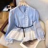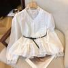 Shanli Dadi Primavera Nuevo Estilo Suelto Color Cuello en V Camisa Cinturón Encaje Serpentina