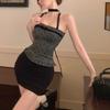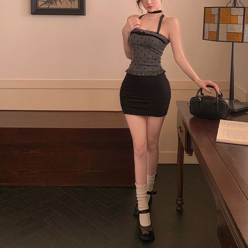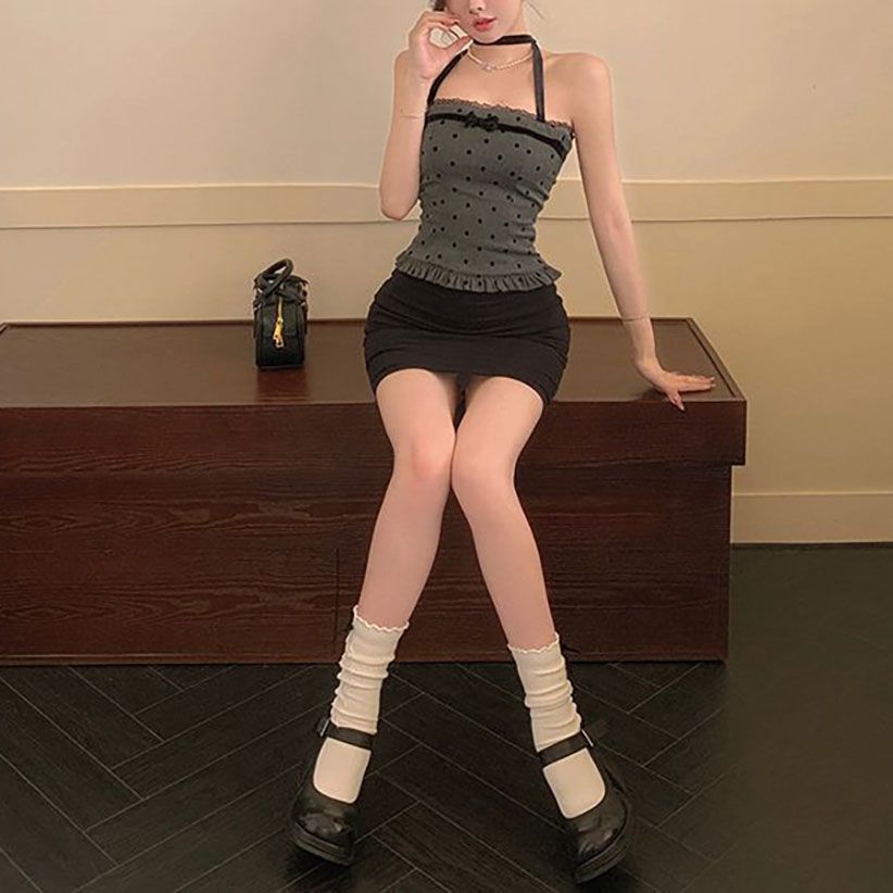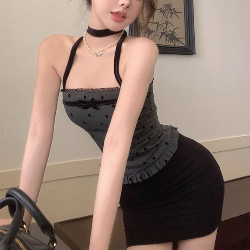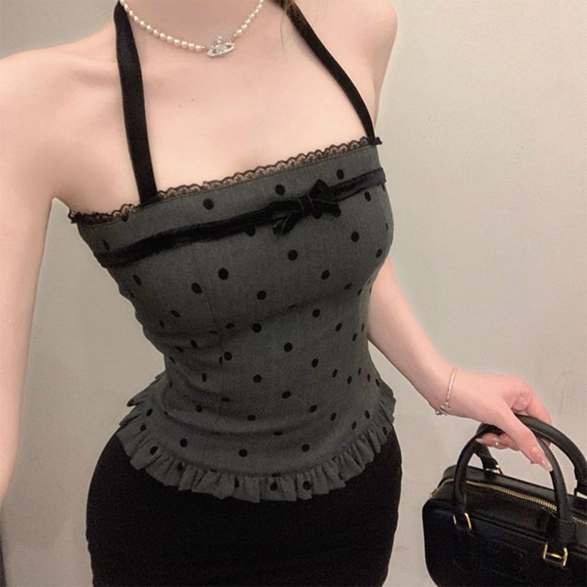 Venta al por Mayor Transfronteriza Estilo Americano Lunares 2025 Nuevo Top Corto Ajustado Dulce Chica Camisola Halter para Mujer