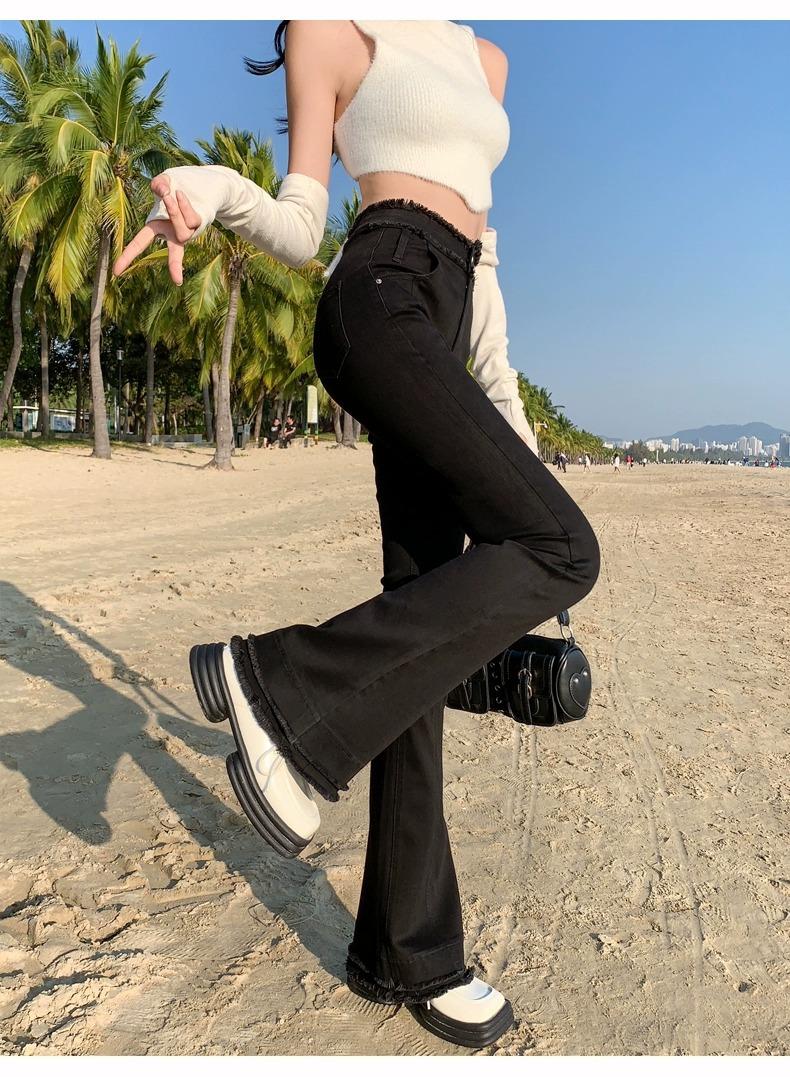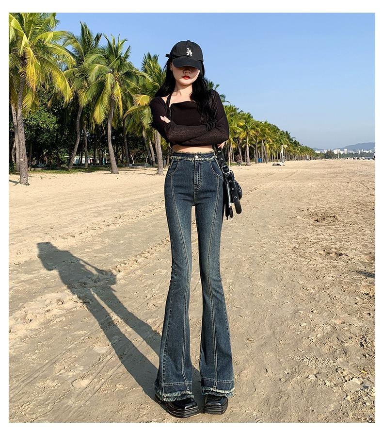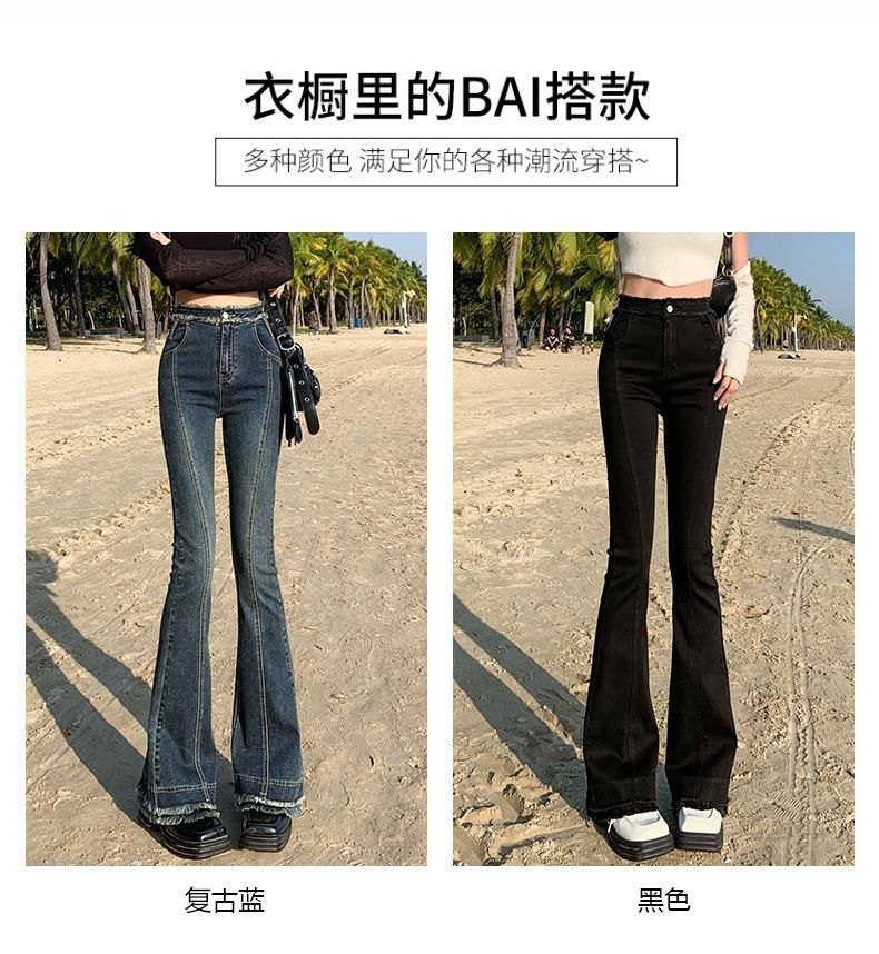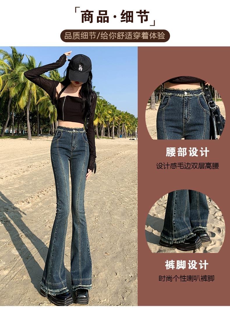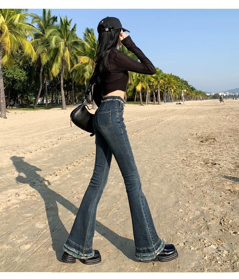 Jeans Acampanados Retro Americanos para Mujer, Primavera y Otoño 2023 Nuevos Pantalones de Campana de Tiro Alto, Corte Slim, Bajo Deshilachado