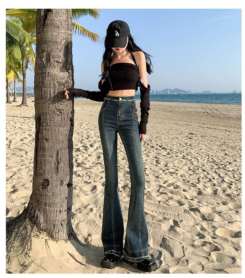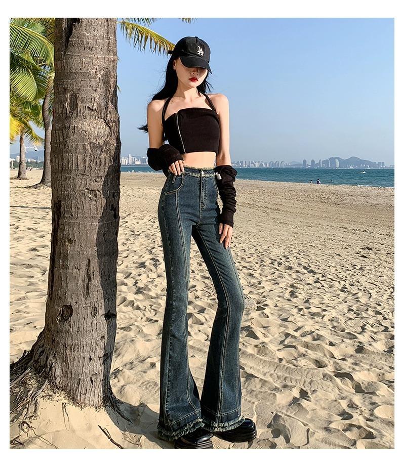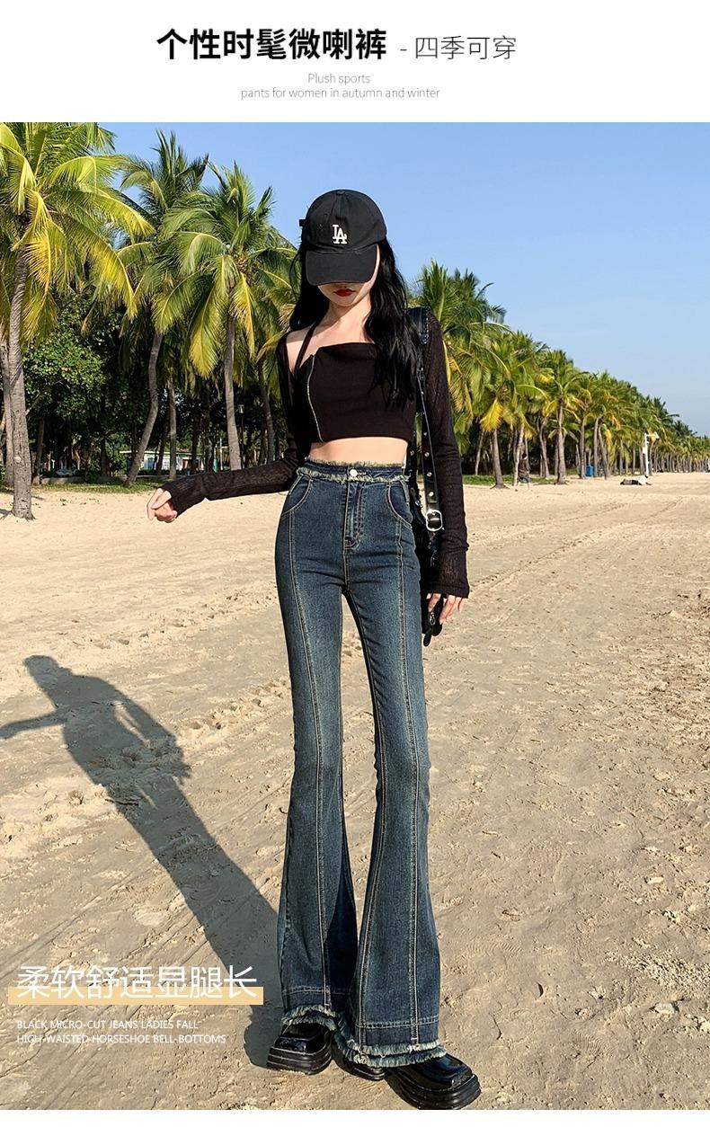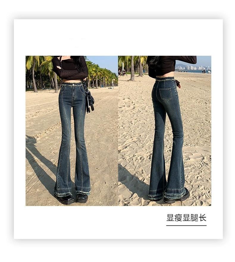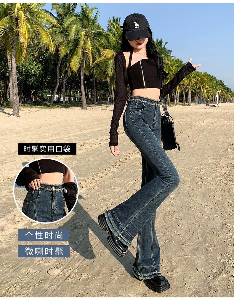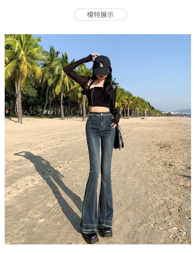 Jeans Acampanados Retro Americanos para Mujer, Primavera y Otoño 2023 Nuevos Pantalones de Campana de Tiro Alto, Corte Slim, Bajo Deshilachado