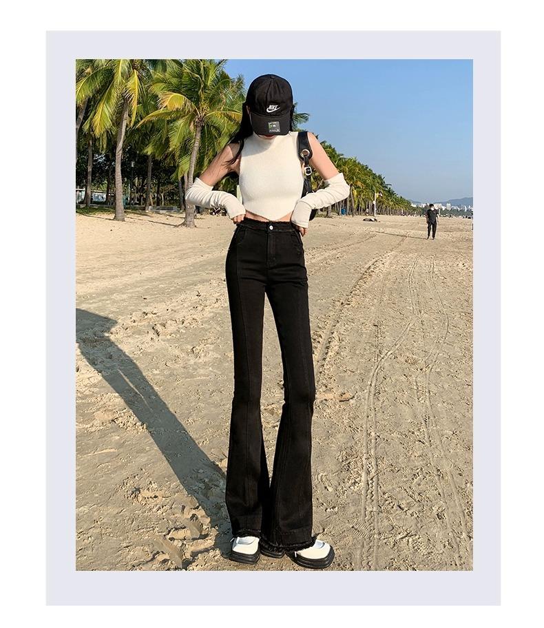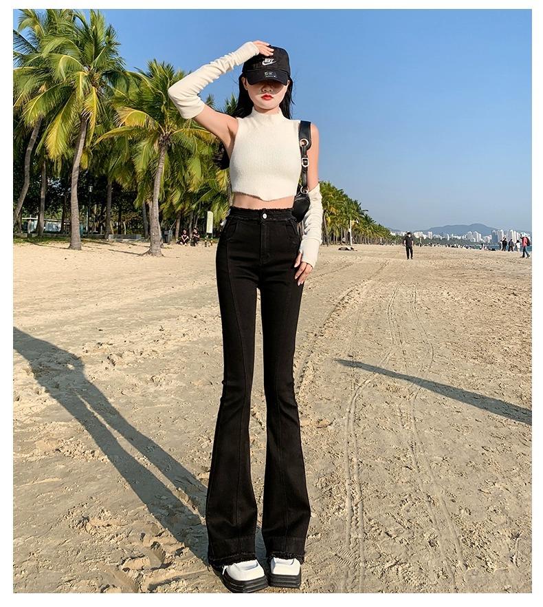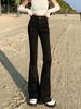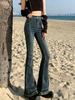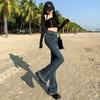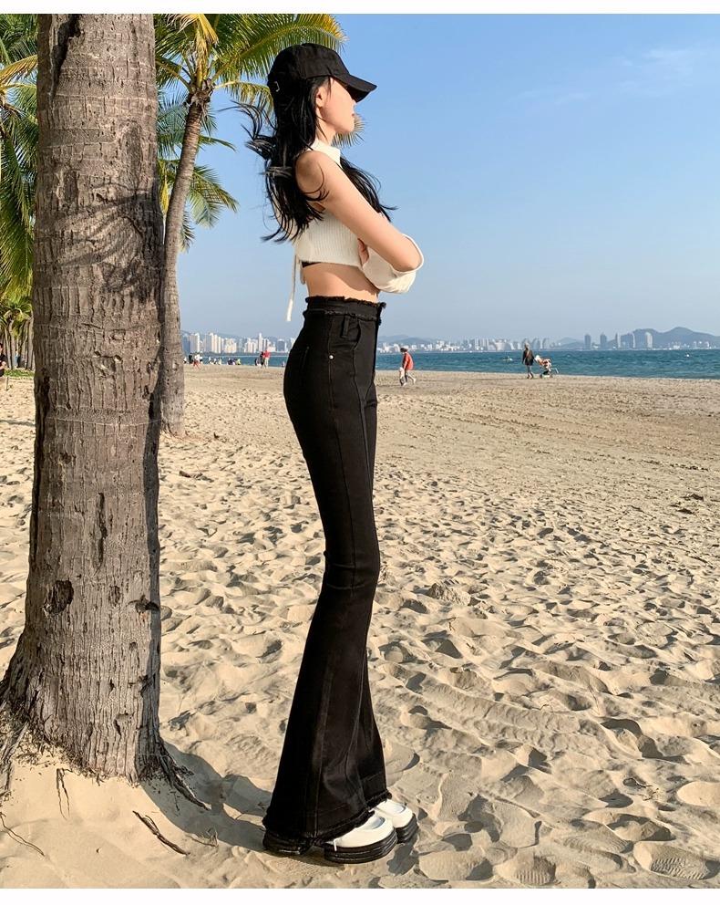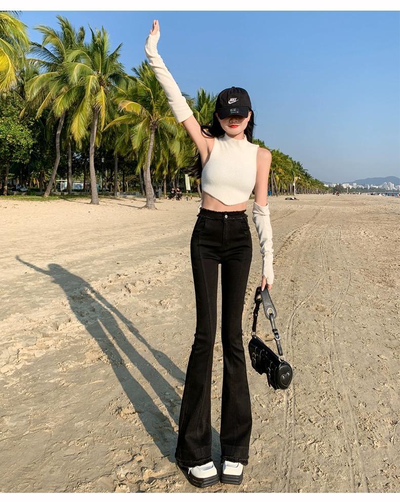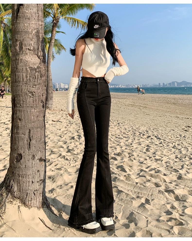 Jeans Acampanados Retro Americanos para Mujer, Primavera y Otoño 2023 Nuevos Pantalones de Campana de Tiro Alto, Corte Slim, Bajo Deshilachado