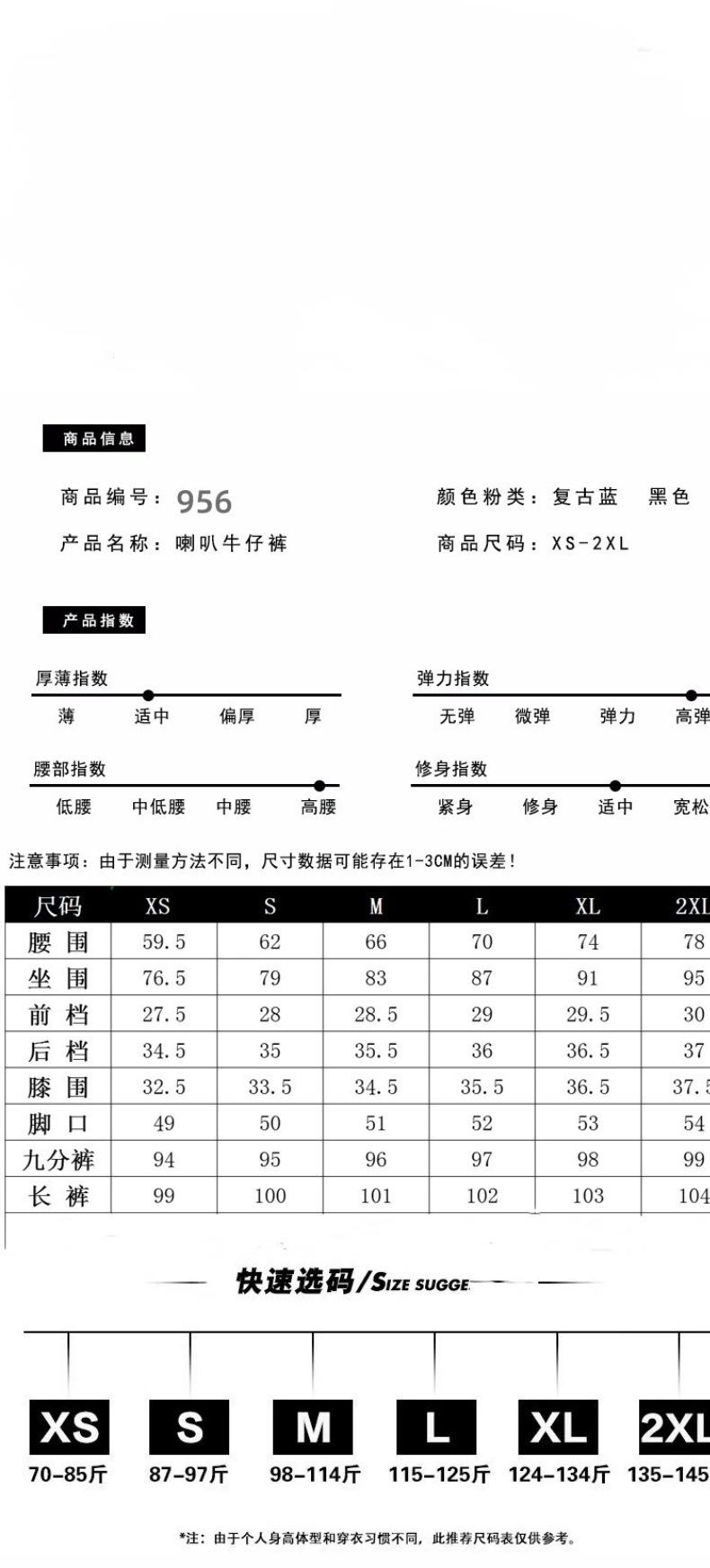 S 42.5-47.5kg, M 47.50 kg-53.00 kg, L 53.00 kg-58.00 kg, XL 58.00 kg-63.00 kg, 2XL 63.00 kg-70.00 kg