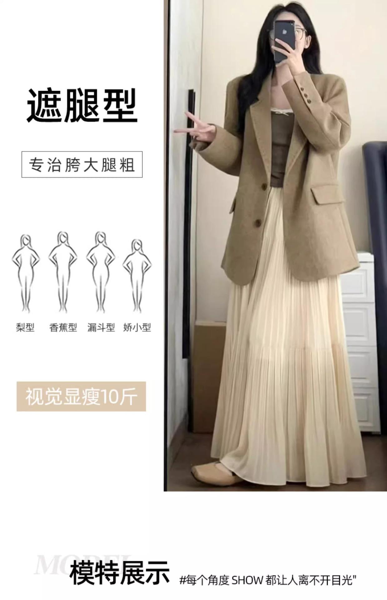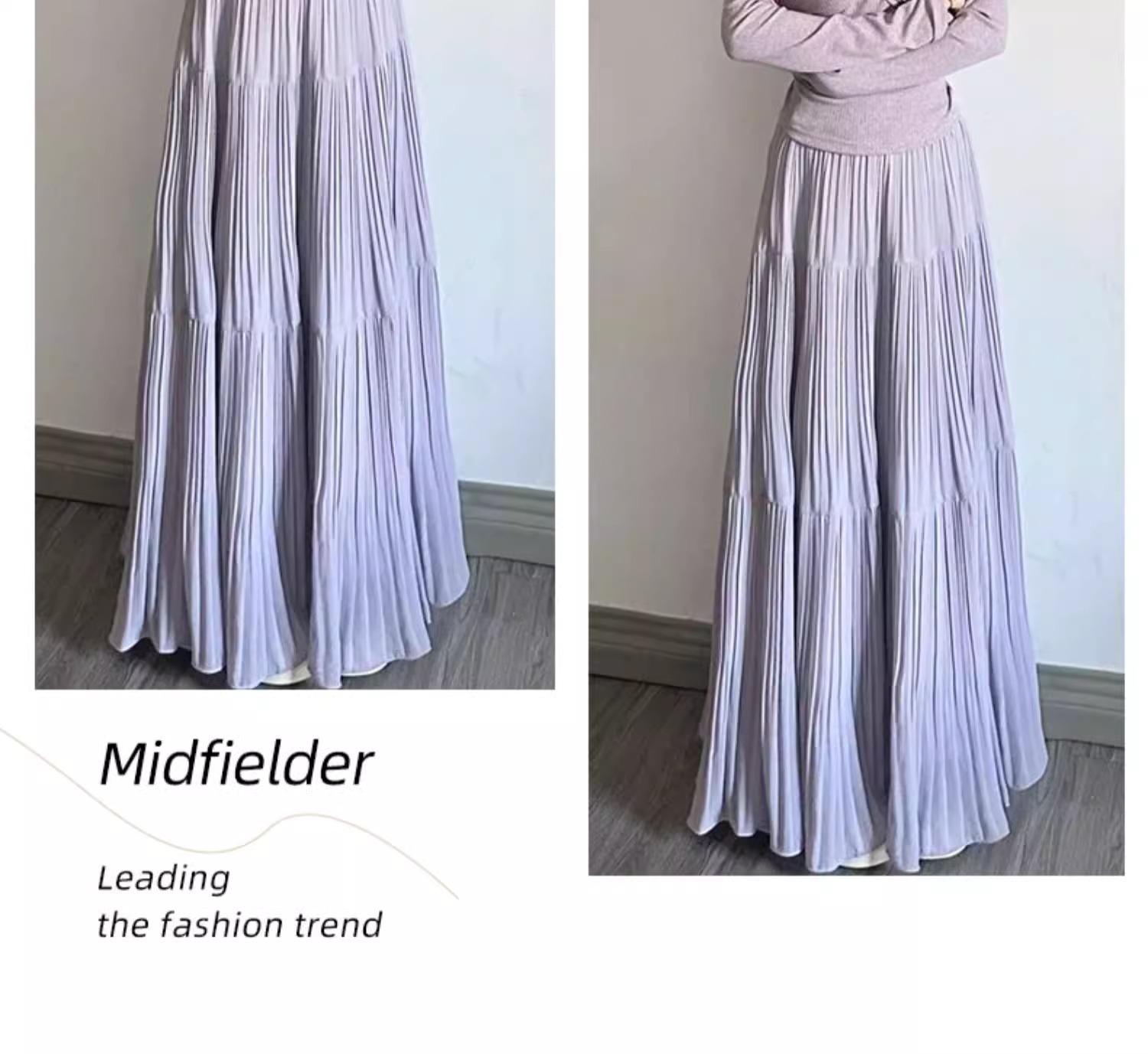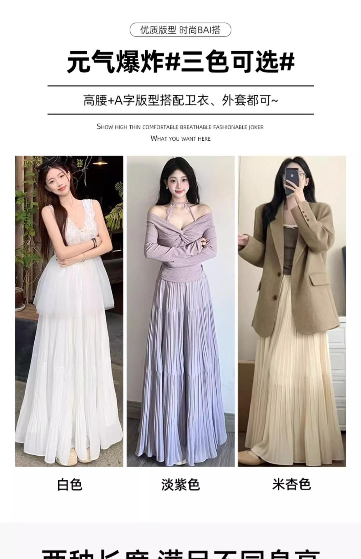 Compra Falda de gasa estilo coreano para mujer Verano 2025 Cintura alta Línea A Falda de pastel Drapeada Vuelo amplio Largo medio Falda plisada al por mayor en Joom.pro
