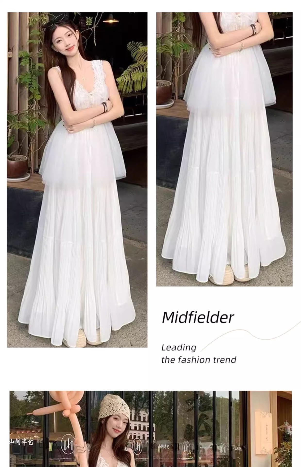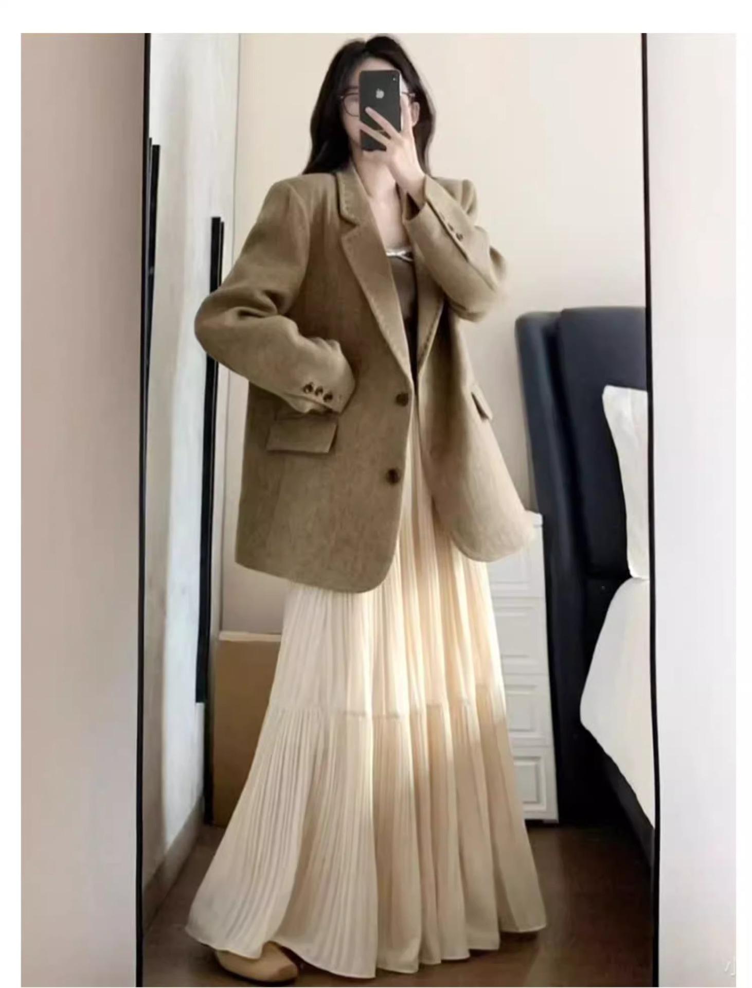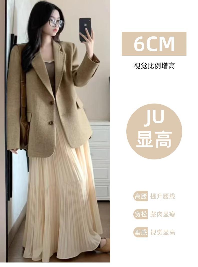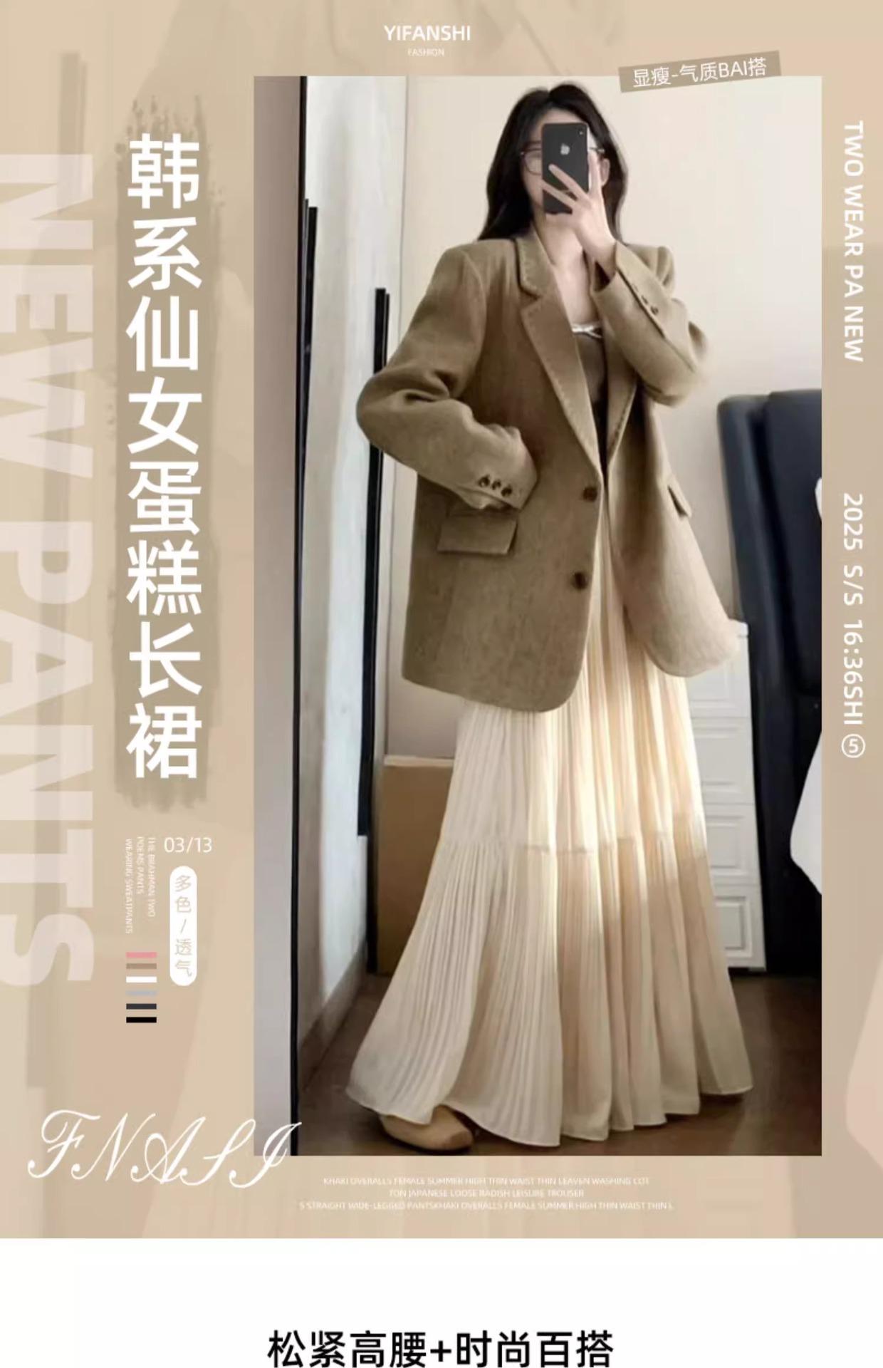 Compra Falda de gasa estilo coreano para mujer Verano 2025 Cintura alta Línea A Falda de pastel Drapeada Vuelo amplio Largo medio Falda plisada al por mayor en Joom.pro