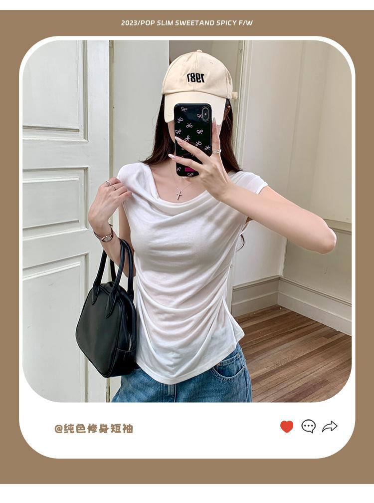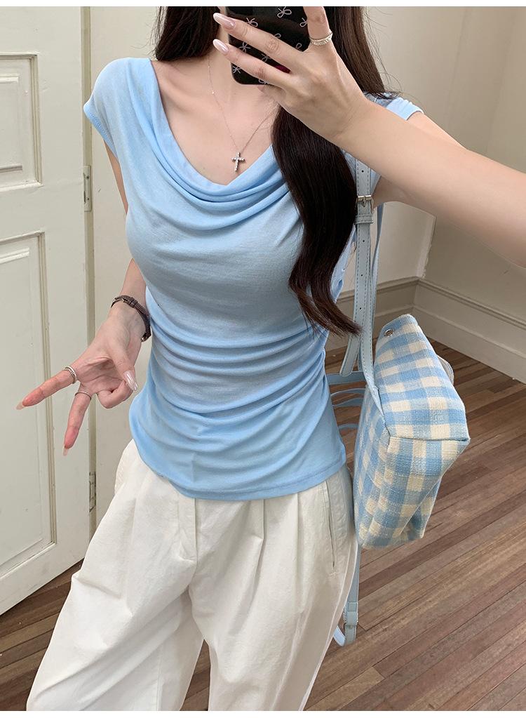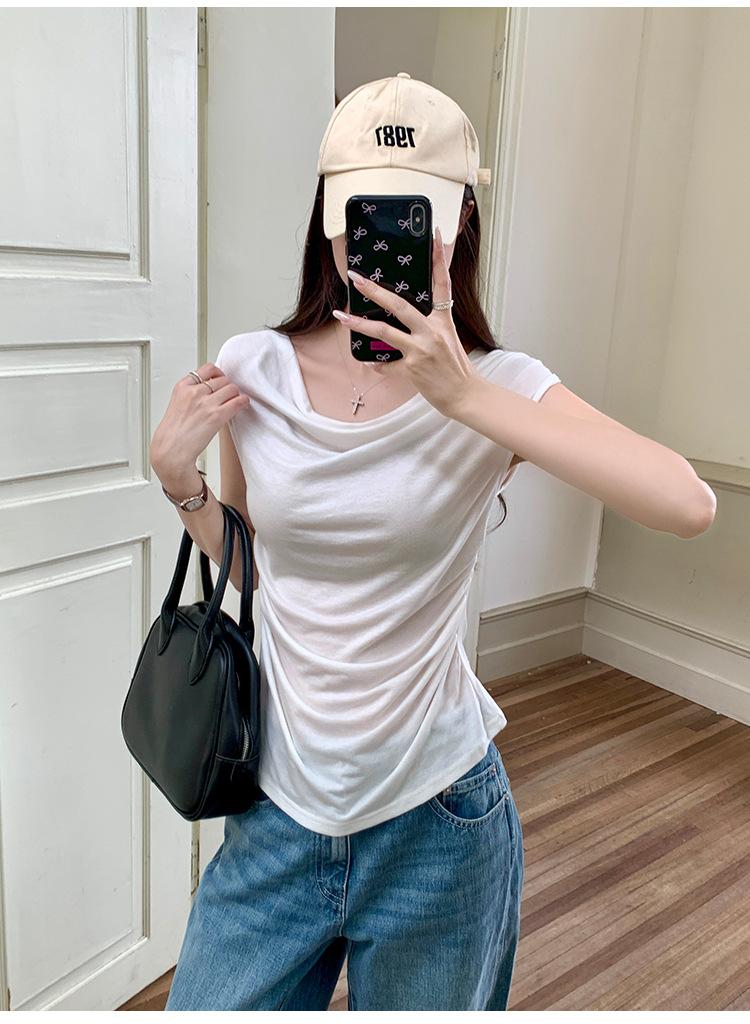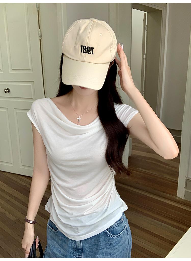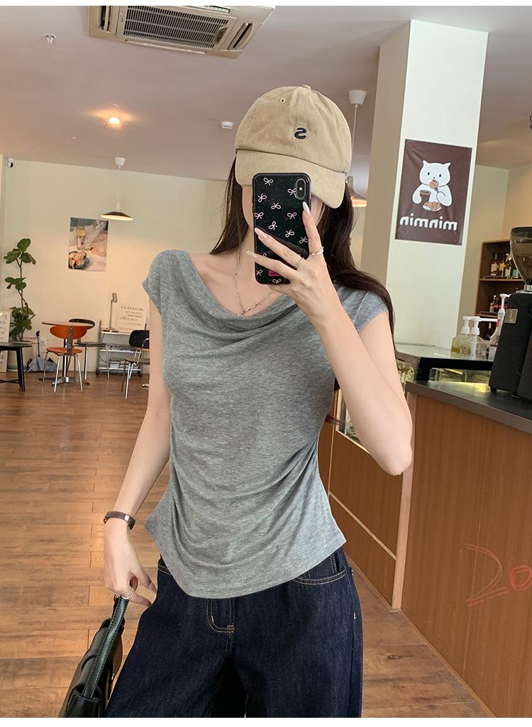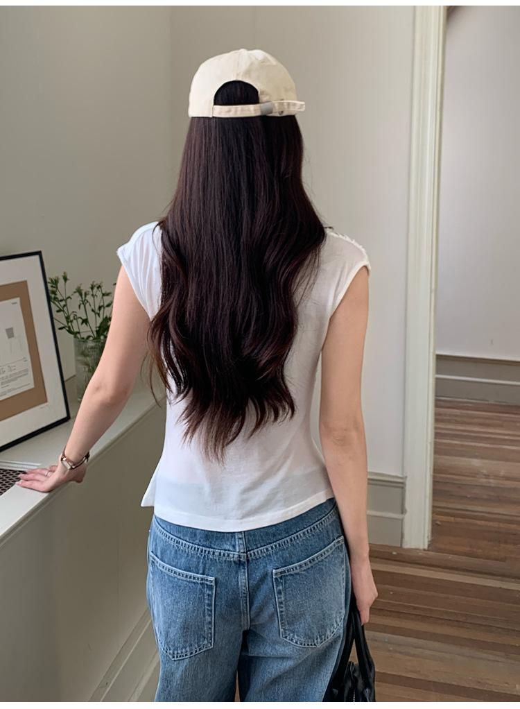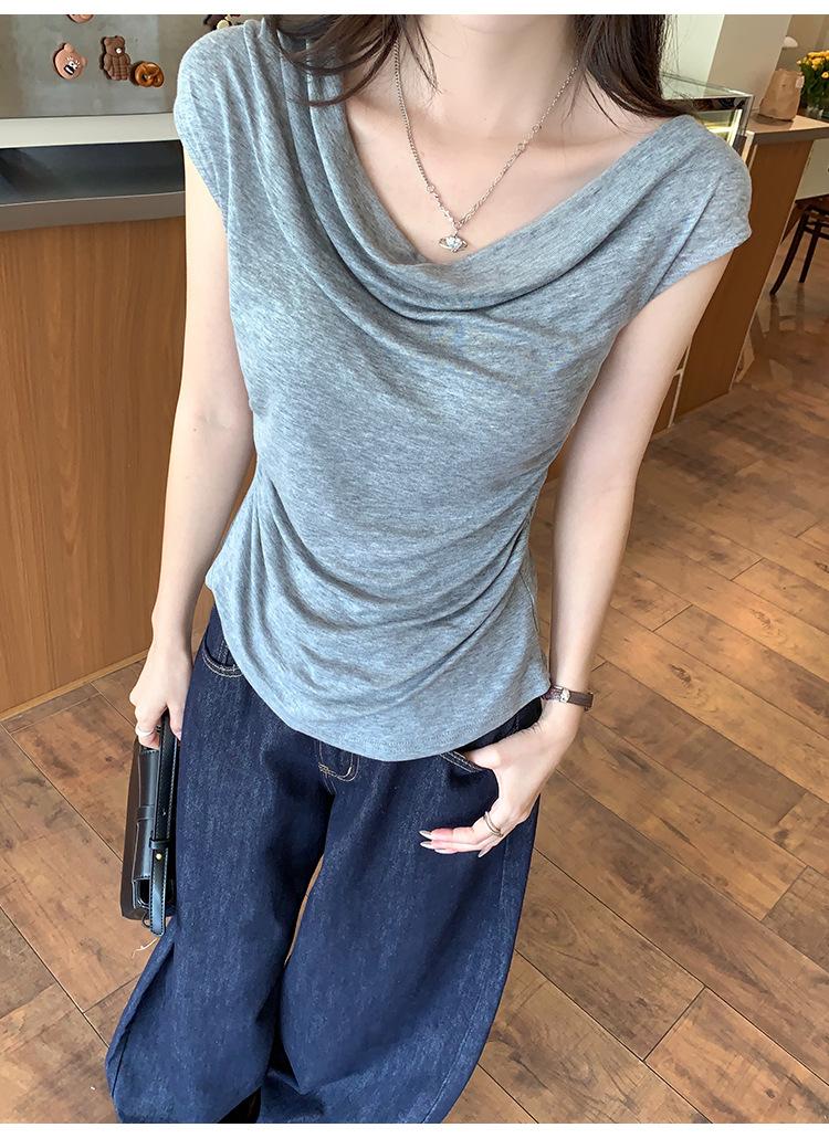 Foto Real # Camiseta sin Mangas con Cuello Irregular Oscilante para Mujer 2025 Nuevo Diseño Plisada de un Hombro Top Corto