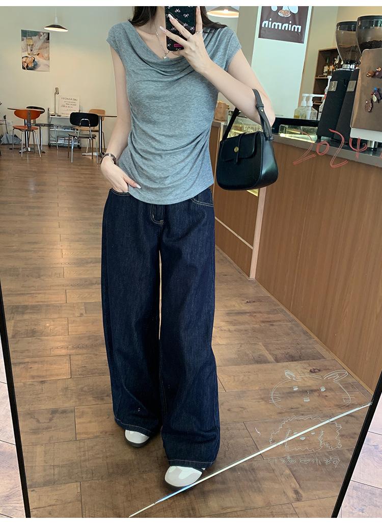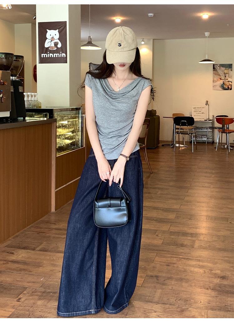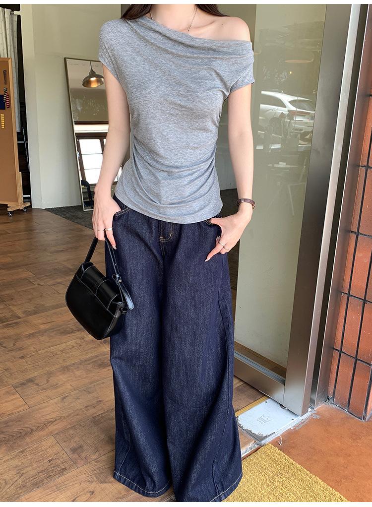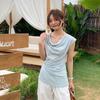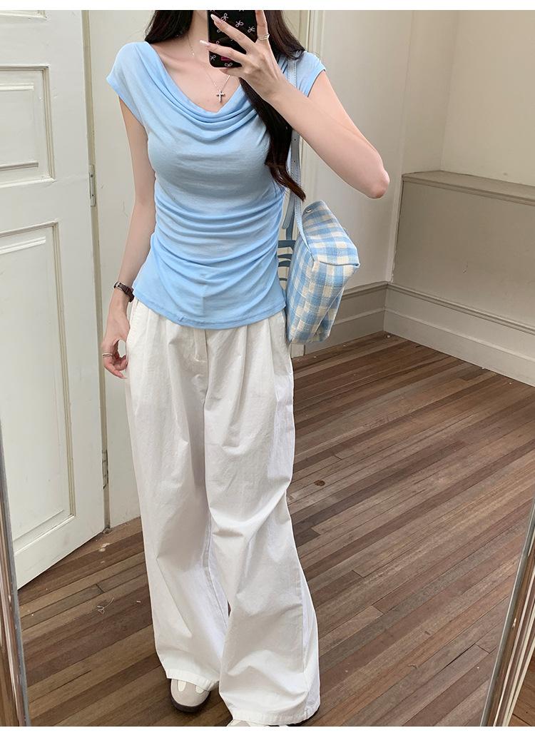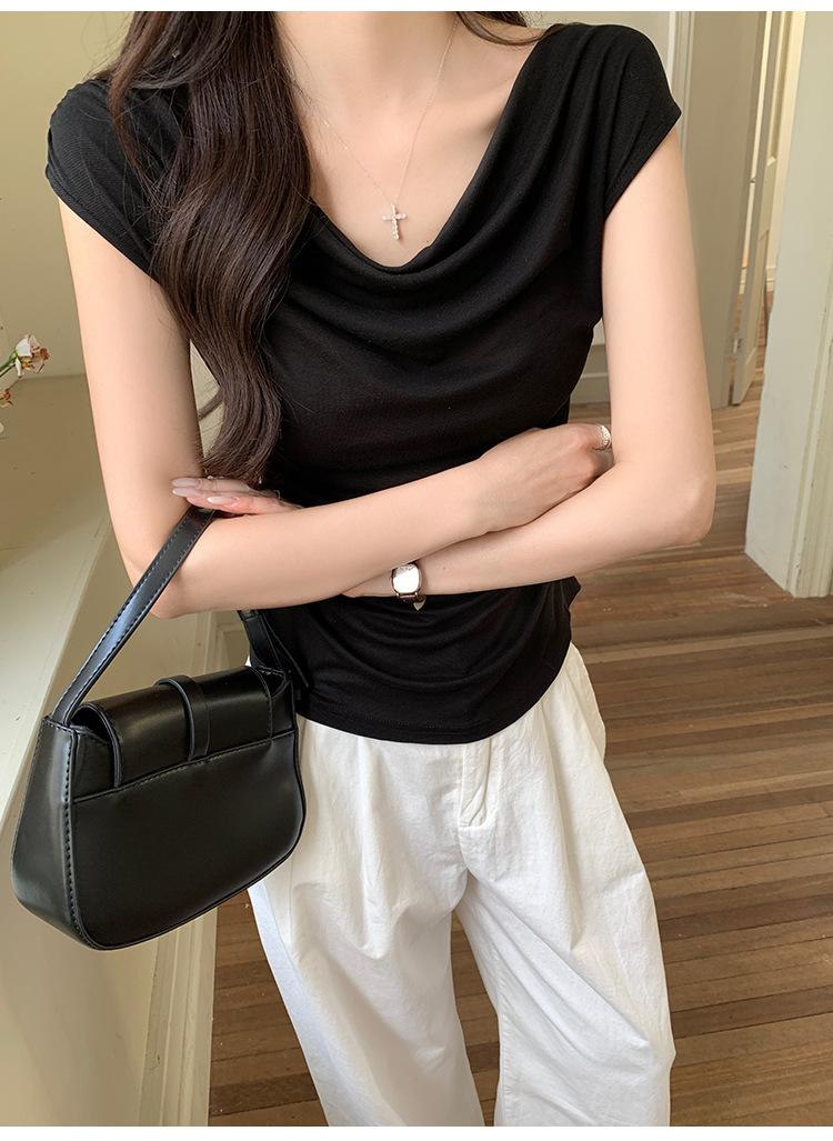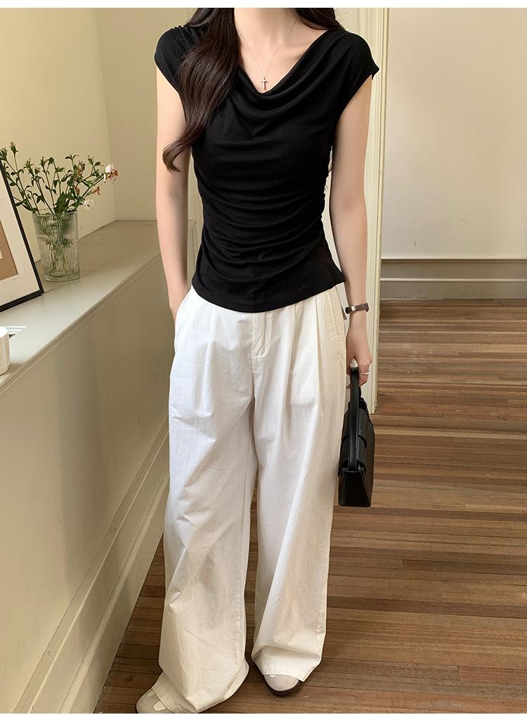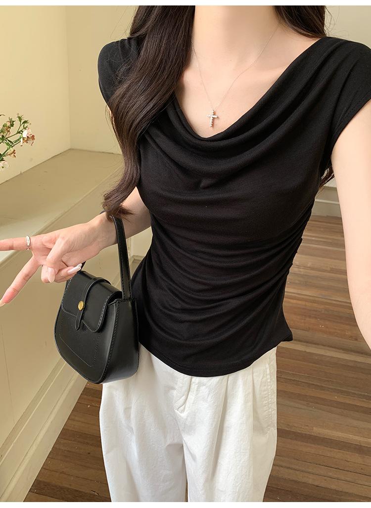 Foto Real # Camiseta sin Mangas con Cuello Irregular Oscilante para Mujer 2025 Nuevo Diseño Plisada de un Hombro Top Corto
