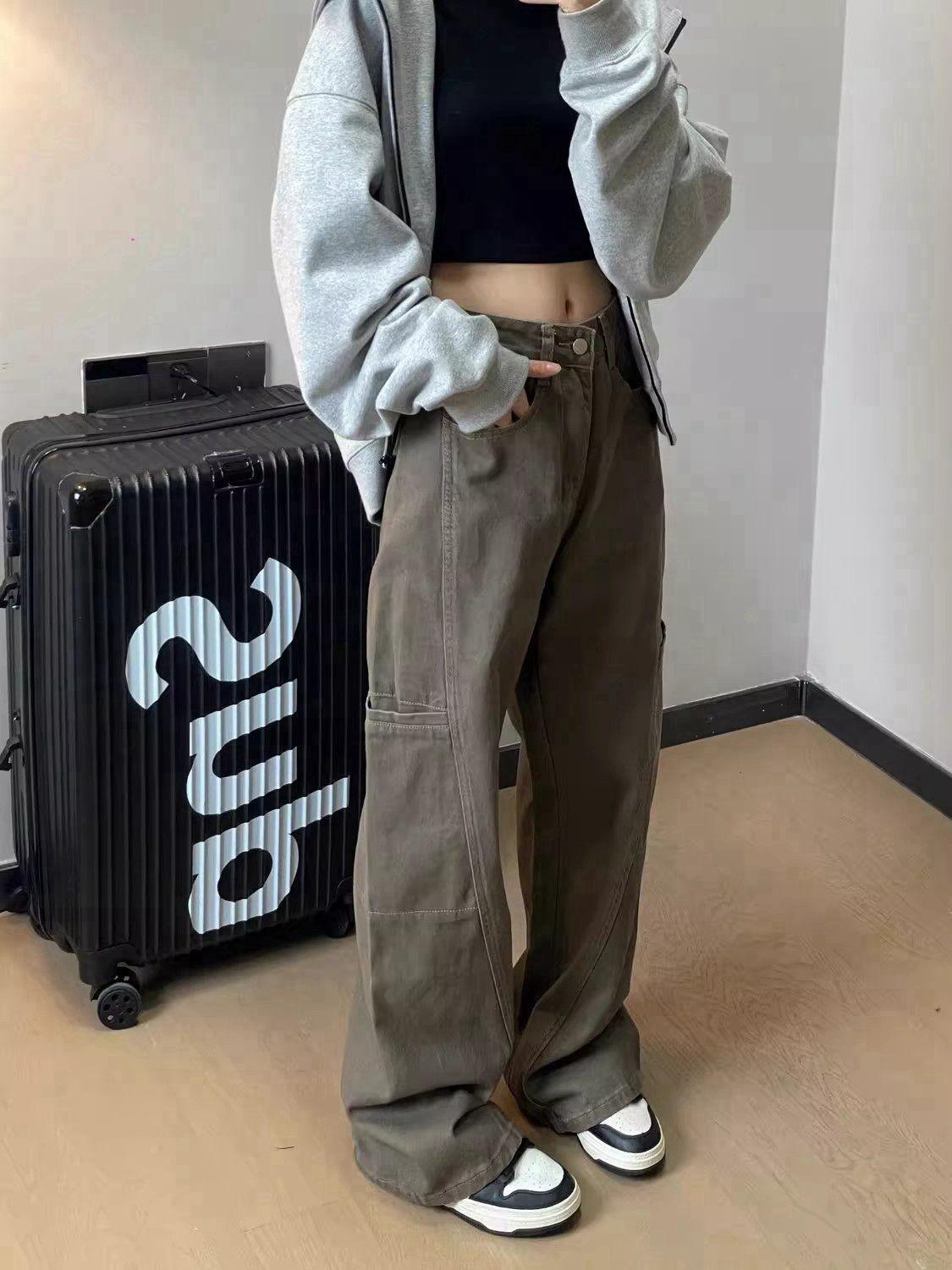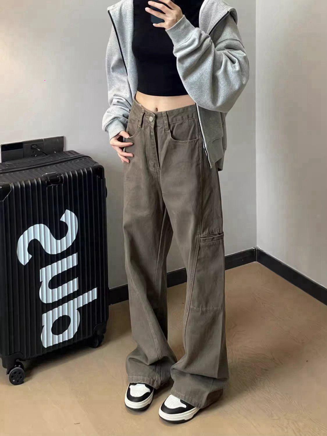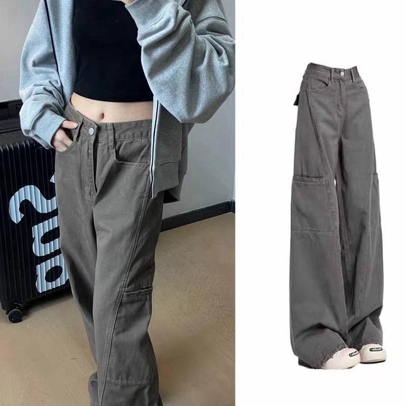 Compra Mono de mezclilla de pierna ancha retro americano para mujer, verano nuevo, cintura alta, holgado, adelgazante, con caída, pierna recta, largo hasta el suelo al por mayor en Joom.pro