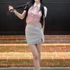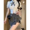 Traje de camisa de manga corta abullonada estilo Pure Lust para mujer, verano, cintura alta, lazo, falda a la cadera, top de manga corta para chica hot