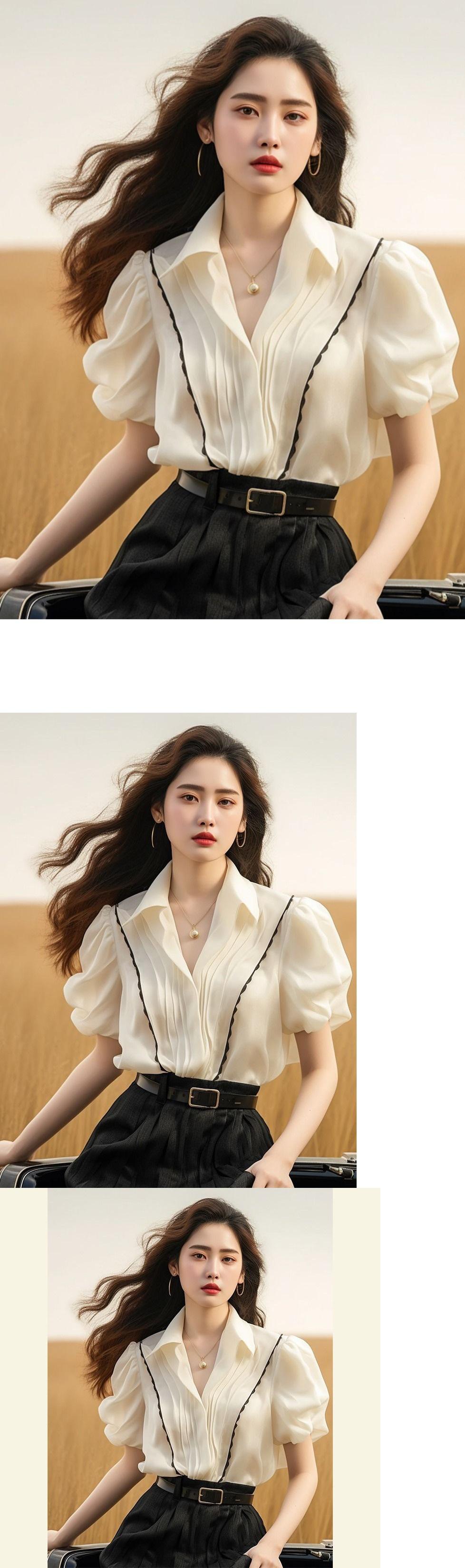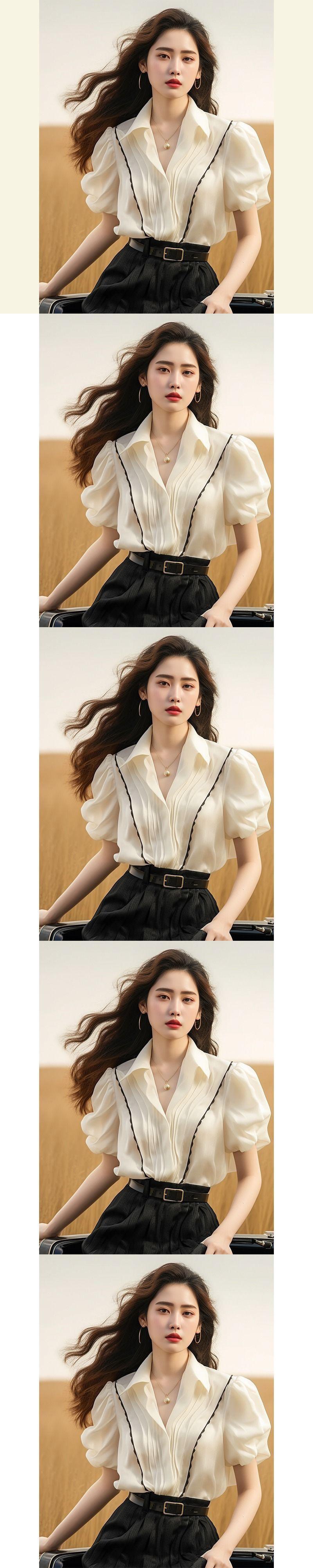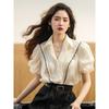 Estilo Francés Único y Hermoso Diseño de Nicho Superior Camisa Blanca Versátil de Alta Gama con Cuello Polo para Mujer Verano