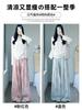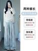 Pantalones Azules de Seda de Hielo de Pierna Ancha para Mujer Verano Nuevo Cintura Alta Sueltos Drapeados Casuales Frescos Pantalones Teñidos Anudados Huecos Rotos